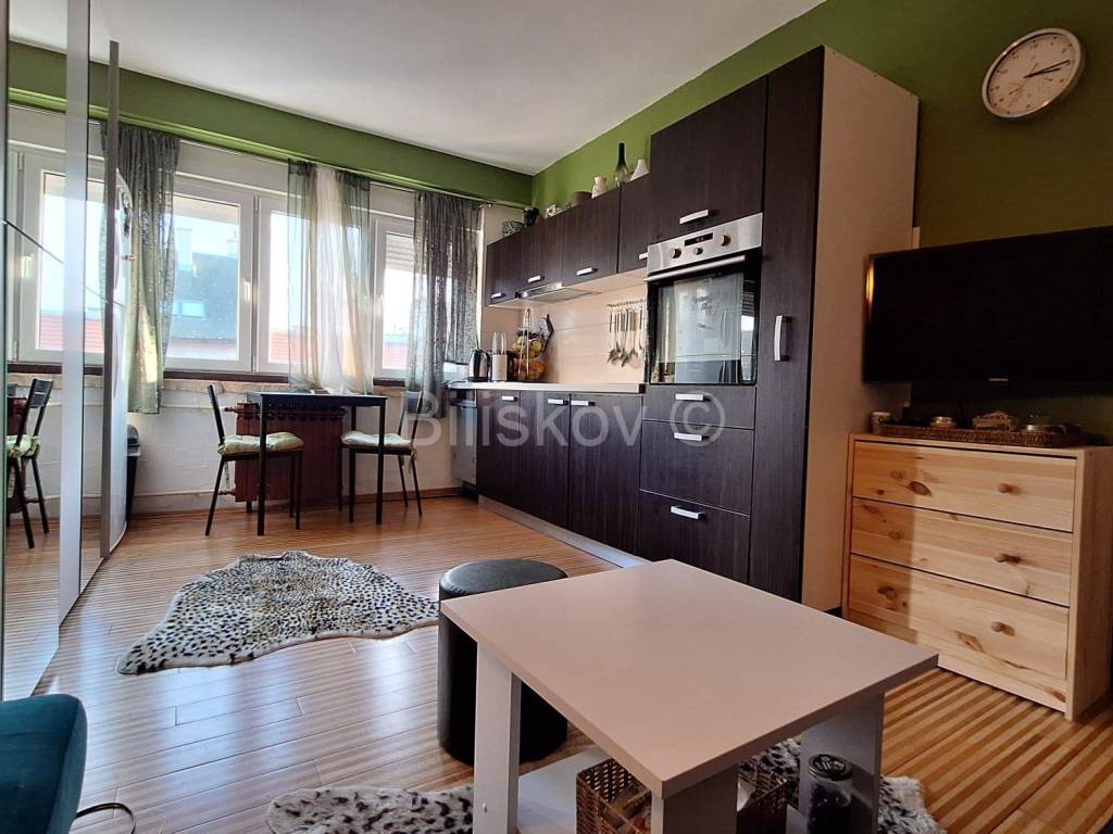 Möblierte und kompakte Ein-Zimmer-Wohnung mit einer Fläche von 30 m im 4. Stock eines Gebäudes aus den 1960er Jahren. Sie besteht aus Flur, Schlafzimmer, Abstellraum, Badezimmer mit WC und Wohnzimmer mit offener Küche. Zur Wohnung gehört auch ein Kellerabstellraum, und im Hof des Gebäudes befindet sich ein Parkplatz für die Bewohner. Das Gebäude ist gepflegt, regelmäßig instand gehalten und in gutem Zustand. Es wurde beim Erdbeben nicht beschädigt. Obwohl derzeit kein Aufzug vorhanden ist, ist dessen Einbau in den nächsten zwei Jahren geplant. Die Lage liegt in der Straßenbahnzone, die schnelle Verbindungen zu verschiedenen Teilen der Stadt ermöglicht.