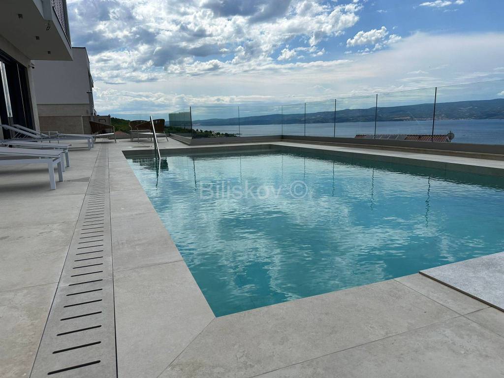 Zum Verkauf steht eine luxuriöse Villa mit Meerblick in einer ruhigen und attraktiven Lage in Jesenice, zwischen Split und Omiš. Diese moderne Immobilie verbindet anspruchsvolles Design, großzügige Raumaufteilung und mediterranes Flair und wurde aus hochwertigen Materialien unter besonderer Berücksichtigung von Funktionalität und Luxus gebaut.