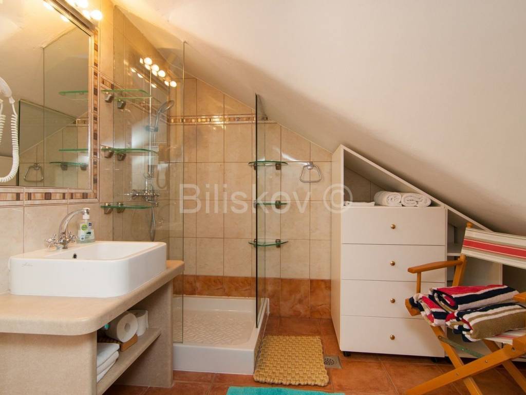 www.biliskov.com ID: 15401-1 Brač, Mirca Doppelhaushälfte mit drei Schlafzimmern, ca. 210 m Wohnfläche auf einem Grundstück von 330 m, erbaut im Jahr 2004 und renoviert im Jahr 2014, gelegen an einer fantastischen Lage direkt am Meer und Strand in Mirca Sie besteht aus drei Etagen: Ein Kellergeschoss mit einem Zimmer, zugehörigem Wohnbereich und Weinkeller, Ein Erdgeschoss mit großem Wohnzimmer, Essbereich und Küche sowie einem Badezimmer, Ein erstes Obergeschoss mit zwei großen Schlafzimmern mit eigenen Badezimmern. Der Außenbereich des Hauses besteht aus einer großen Terrasse mit direktem Zugang zum Strand, auf der sich auch ein Pool mit 20 m befindet. Das Haus bietet außergewöhnliches Potenzial sowohl für Investitionen im Tourismus als auch als ruhiger privater Rückzugsort direkt am Meer. Fenster: PVC Heizung: Zentrale Elektroheizung Ausrichtung: Nord-Süd-West Energieausweis: In Bearbeitung Preis: 4.170 / monatlich Maklerprovision: eine Monatsmiete + MwSt. Das Haus wird für eine Mindestmietdauer von einem Jahr vermietet.