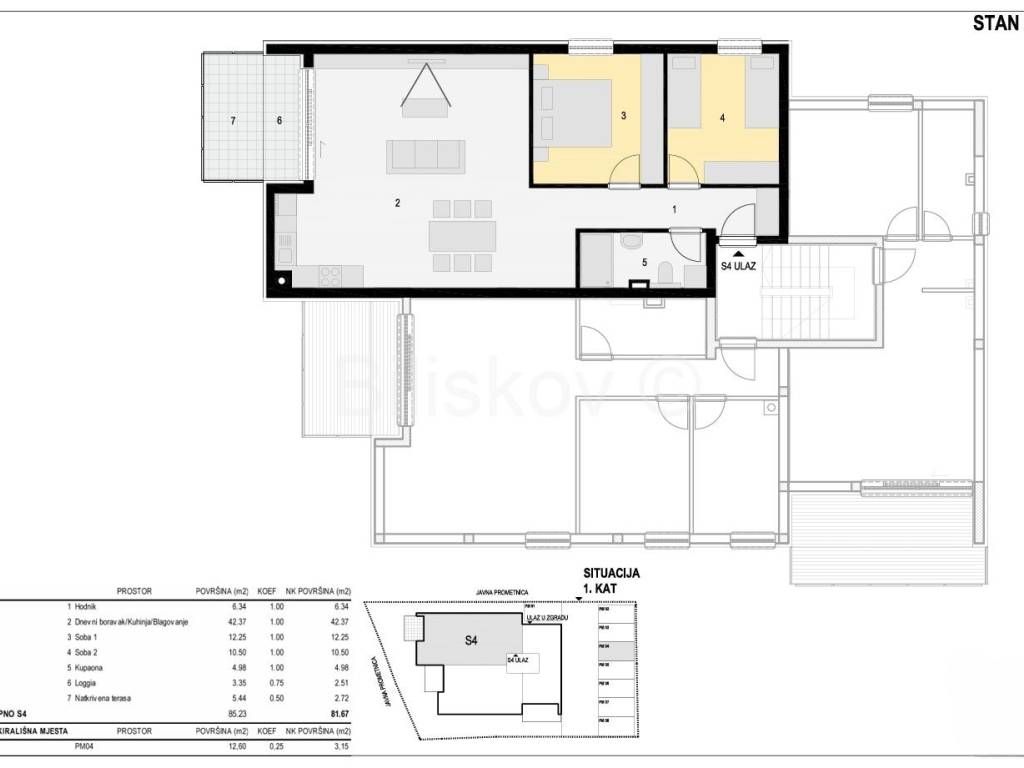 www.biliskov.com ID: 15178 Pag, Mandre Zum Verkauf steht eine Drei-Zimmer-Wohnung mit 81,67m im 1. Stock eines luxuriösen Neubaus mit 8 Wohneinheiten. Die Fertigstellung ist fürim Laufe des September und Oktober 2025