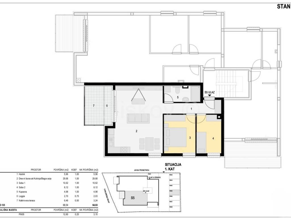 Zum Verkauf steht eine Dreizimmerwohnung mit einer Fläche von 64,63 m im 1. Stock eines luxuriösen Neubaus mit 8 Wohneinheiten. Die Fertigstellung des Baus wird bisim Laufe des September und Oktober 2025