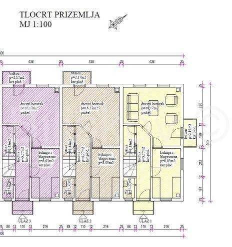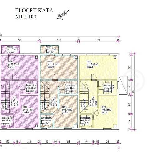 Zum Verkauf stehen drei dreistöckige, fünfzimmerige Wohnungen mit einer Gesamtfläche von 334,50 m in einem unfertigen Gebäude, dessen Bau im Jahr 2008 begonnen wurde.