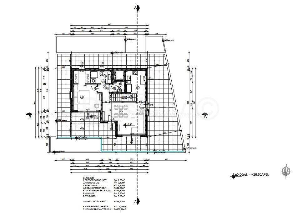 Nenatkrivena terasa: 100,7 (x0,25)