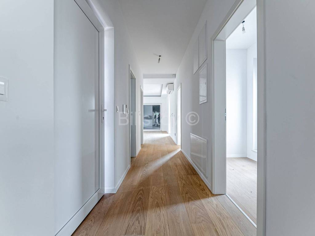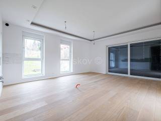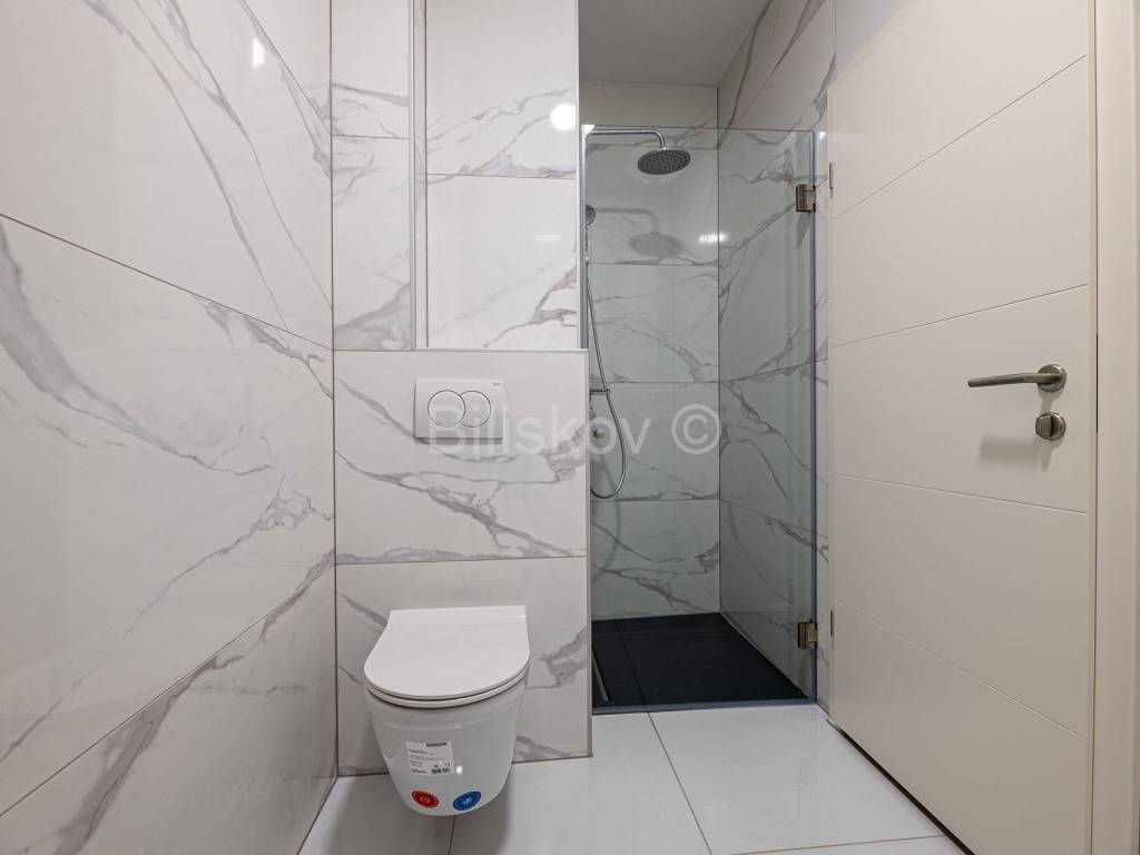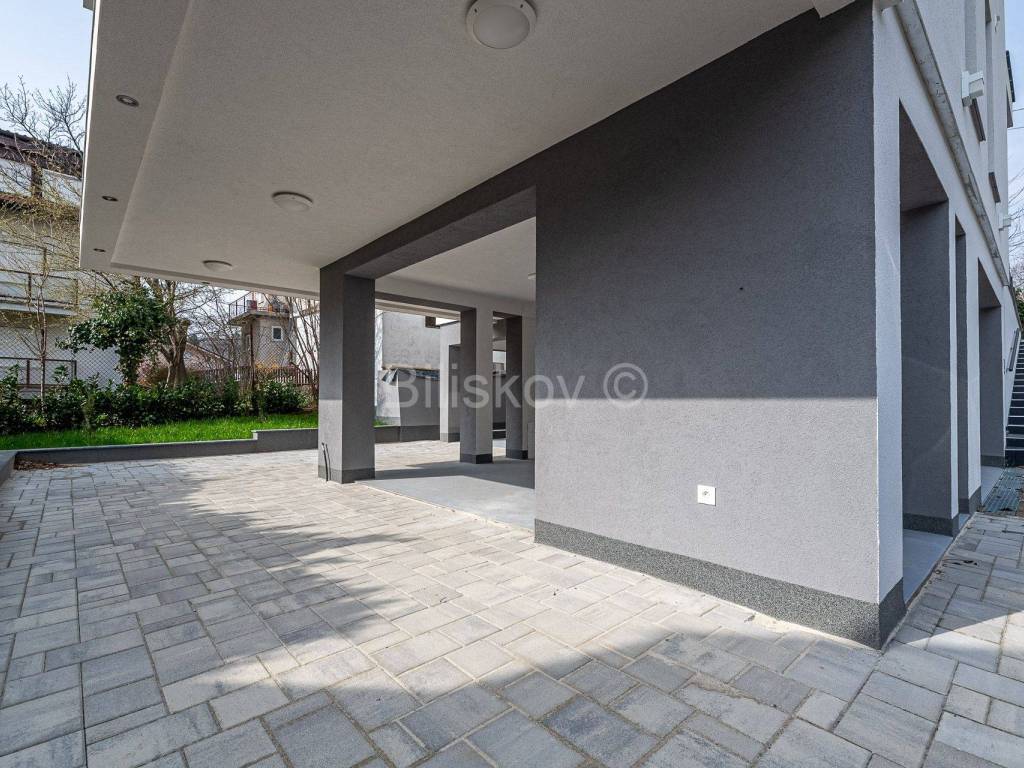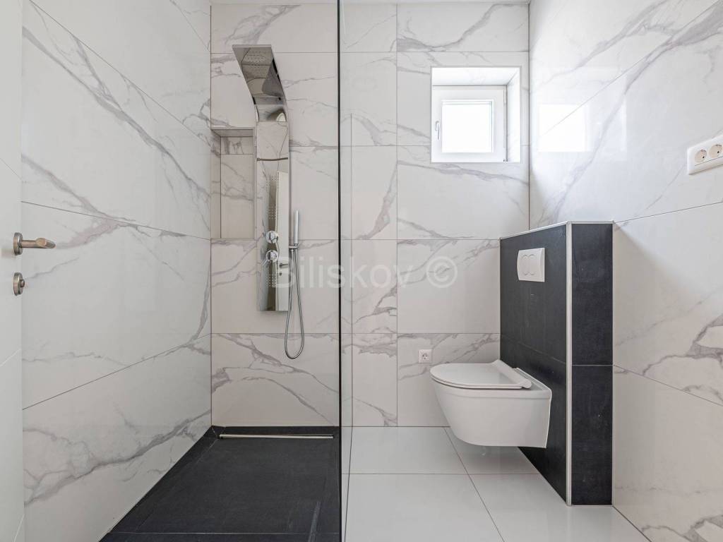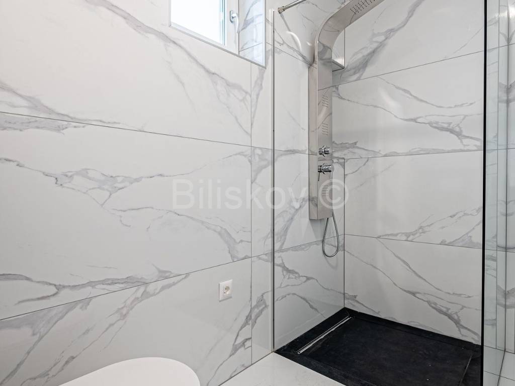 Die erste Wohneinheit befindet sich im Erdgeschoss und besteht aus einem Flur, einem großen Wohnzimmer als Teil der Küche und dem Esszimmer (offenes Konzept) mit Zugang zu einer großen Terrasse mit Glaszaun, zwei Badezimmern und drei Schlafzimmern, eines davon davon hat Zugang zur Terrasse. Die Gesamtfläche beträgt 109 m2.