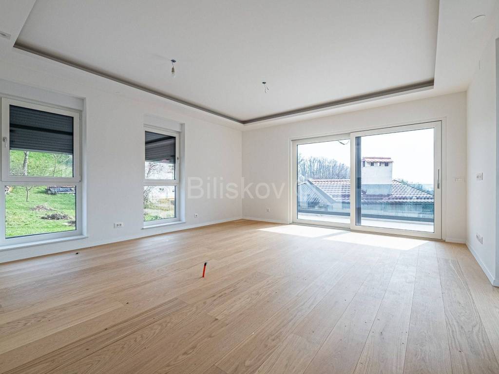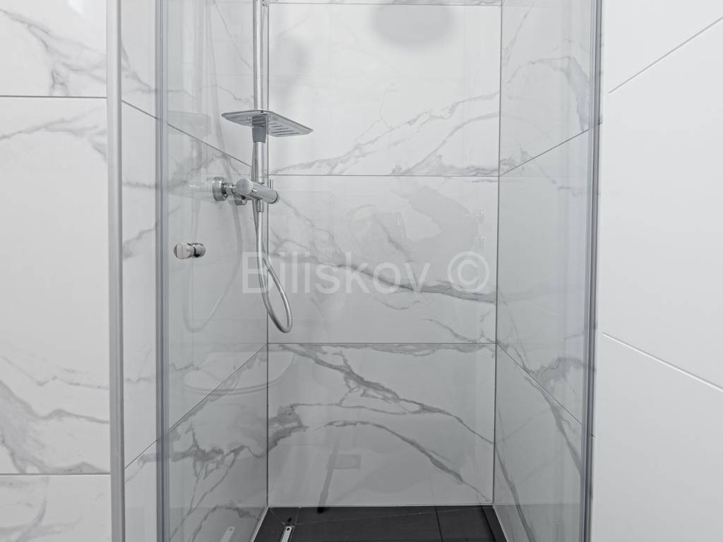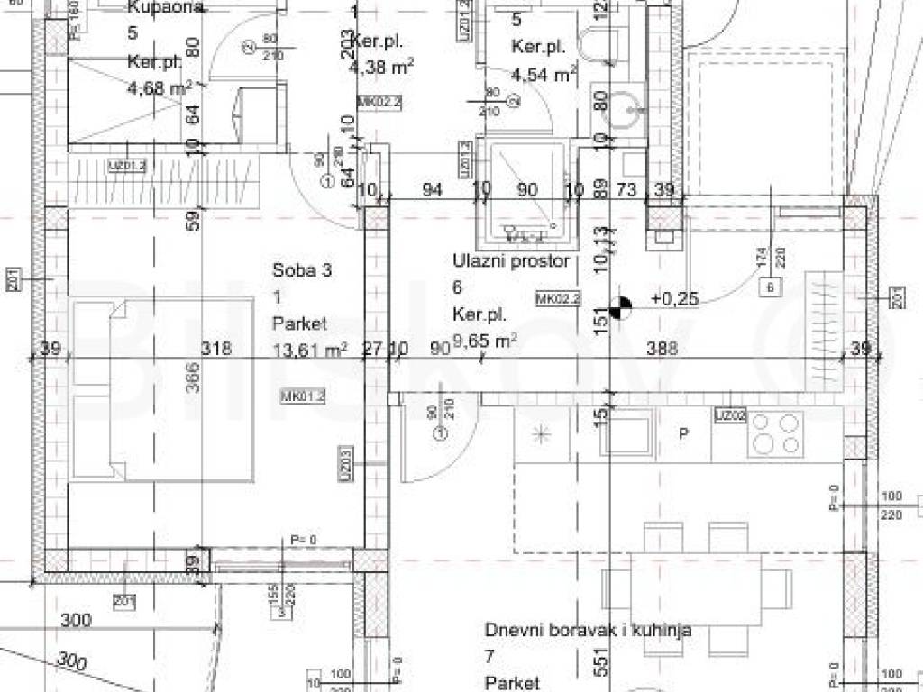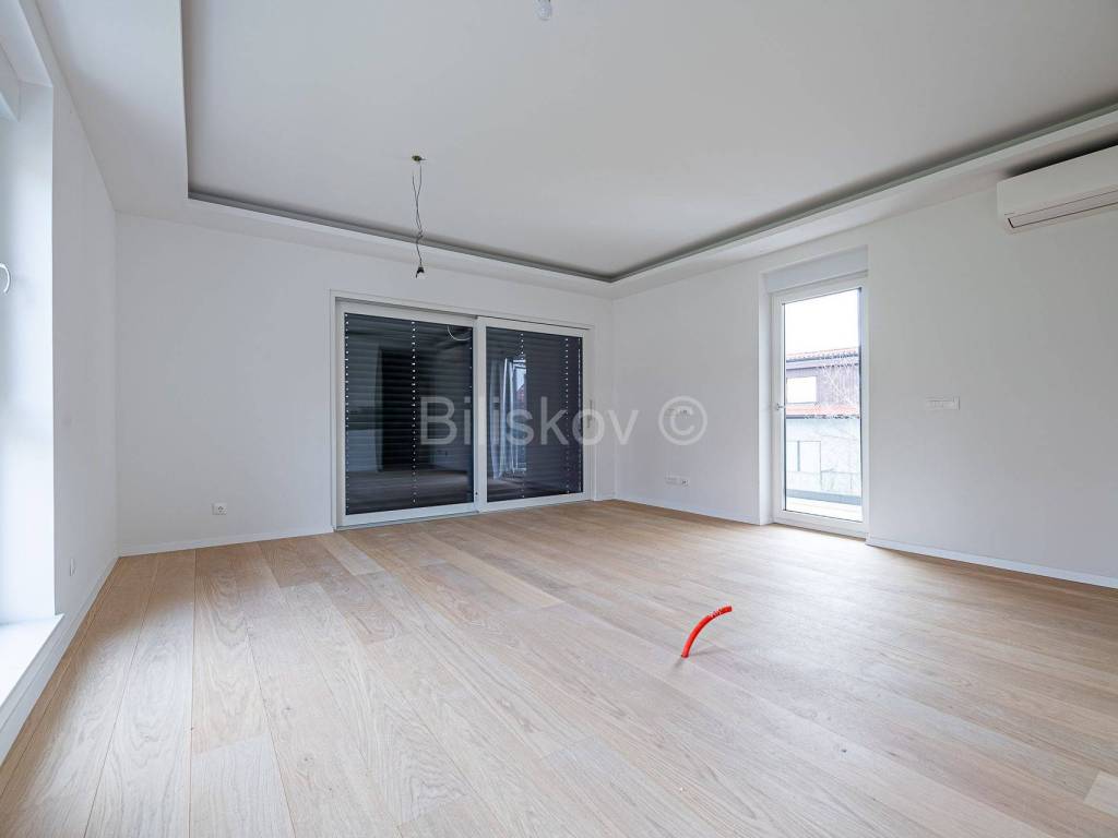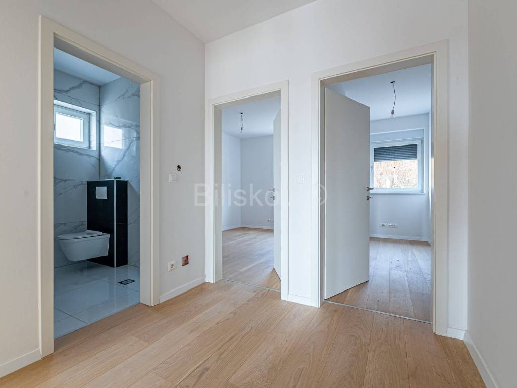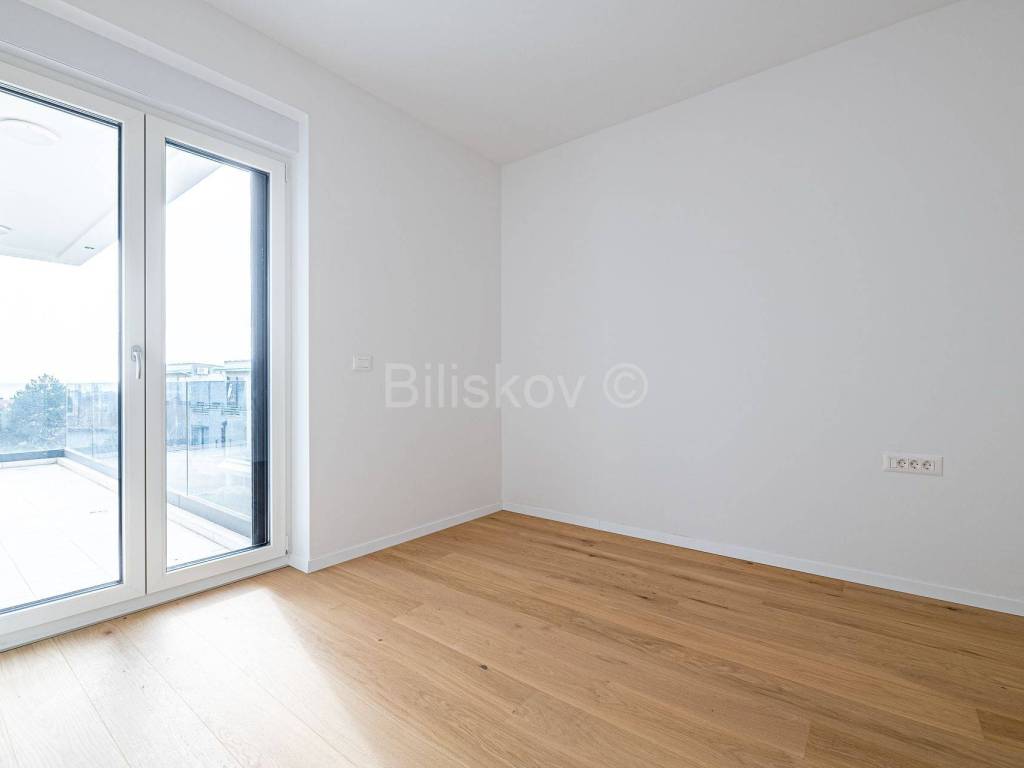 Die erste Wohneinheit befindet sich im Erdgeschoss und besteht aus einem Flur, einem großen Wohnzimmer als Teil der Küche und dem Esszimmer (offenes Konzept) mit Zugang zu einer großen Terrasse mit Glaszaun, zwei Badezimmern und drei Schlafzimmern, eines davon davon hat Zugang zur Terrasse. Die Gesamtfläche beträgt 109 m2.