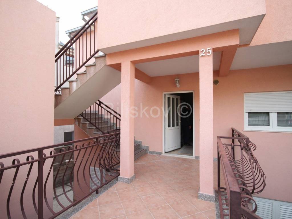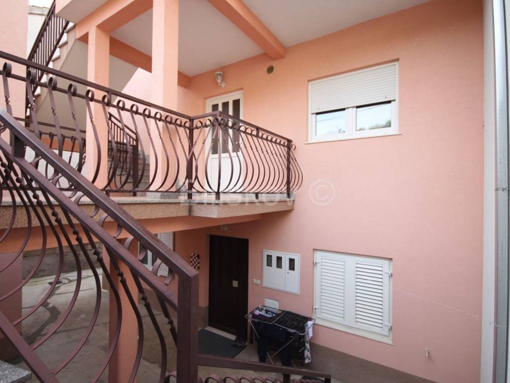 Im ersten Stock befindet sich eine frisch renovierte und neu eingerichtete Wohnung mit einer geräumigen Küche mit Wohnzimmer, zwei Schlafzimmern, einem Badezimmer, einer Terrasse vor dem Eingang zur Wohnung und einem Balkon, der vom Wohnzimmer aus zugänglich ist Schlafzimmer.