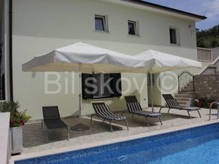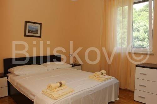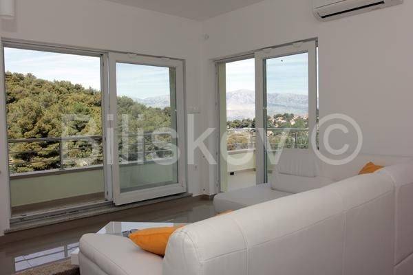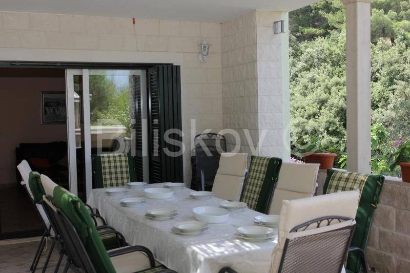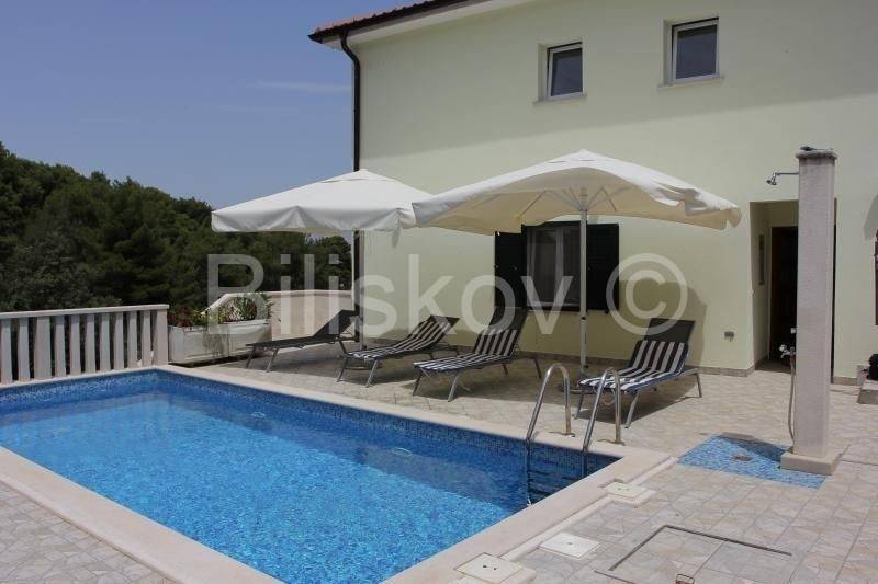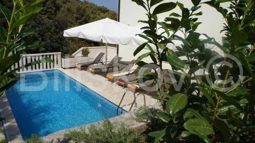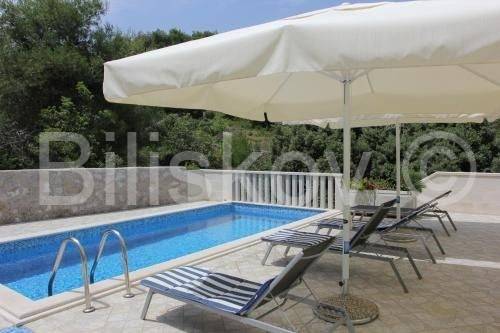 Splitska, Insel Brač - 4*-Villa mit Pool (freistehendes Gebäude).Die Fläche der Villa beträgt ca. Es hat eine Fläche von ca. 230m2 und wurde auf einem Grundstück von 722m2 gebaut.Es besteht aus einem Erdgeschoss und einem ersten Stock, es besteht die Möglichkeit, ein hohes Dachgeschoss zu bauen.Im Erdgeschoss gibt es ein Wohnzimmer mit Küche und Esszimmer mit Zugang zur Terrasse, 2 Schlafzimmer und 2 Badezimmer.Eine Außentreppe führt in den ersten Stock, wo sich 3 Zimmer mit jeweils eigenem Bad und eine große Terrasse von ca. 100 m befinden. 25 m2 mit Blick auf das Meer.Rund um das Haus ist ein Garten mit dekorativen mediterranen Pflanzen angelegt und gepflegt.