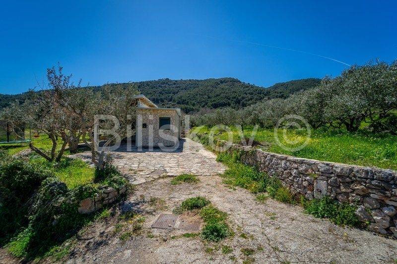 Neben dem Haus gibt es einen mit Steinen bedeckten Außengrill, während sich am Ende des Olivenhains ein 5 m2 großer Werkzeugraum befindet.