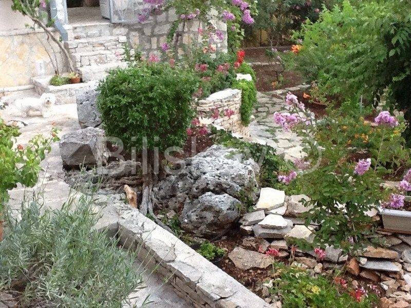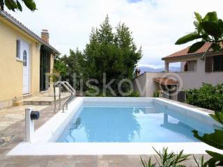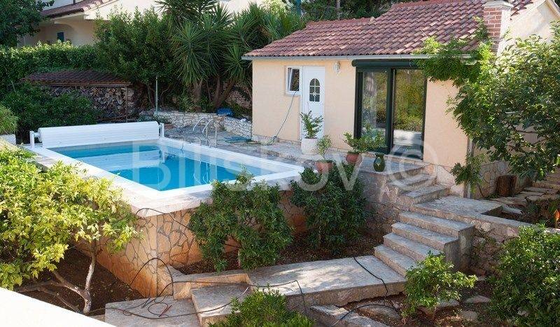 Brač, Splitska, 2 Einfamilienhäuser und ein Schwimmbad auf einem gepflegten Garten von 1000 m2 im zentralen Teil der Stadt, mit Blick auf das Meer.