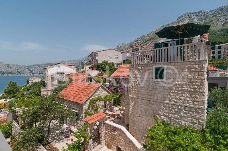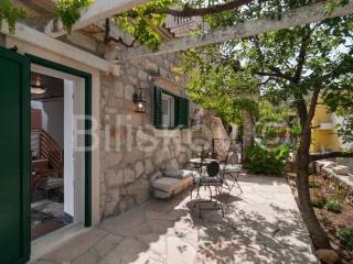 4 autohtone dalmatinske kuće, obnovljene i preuređene u tradiocionalnom dalmatinskom duhu. Najveća kuća- glavna kuća ima tlocrtnu površinu od 82 m2 i sastoji se od: suterena u kojem je smješten prostor za doručak sa svom potrebnom opremom i konoba. U prizemlju se nalazi kuhinja, blagovaonica, kupaonica i prostrani dnevni boravak. Na prvom katu su tri spavaće sobe i kupaonica, te na drugom katu zaseban apartman sa koje terase se pruža prekrasan pogled na more. Uz kuću se nadovezuje jedan manji apartman. U dvorišnom dijelu nalaze se 3 manje kućice, svaka zesebni apartman. Dvorišta je veličine 270 m2, te garaža 38 m2, ukupna površina svih objekata 322 m2.