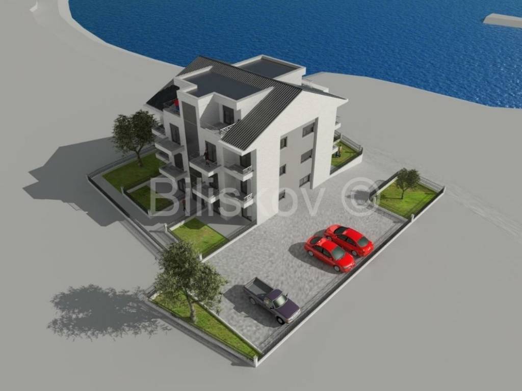 Pašman, 150 m vom Fährhafen und buchstäblich 7 m vom Sandstrand entfernt, Wohnungen im Bau, in einem Gebäude auf 3 Etagen mit 8 Wohneinheiten.