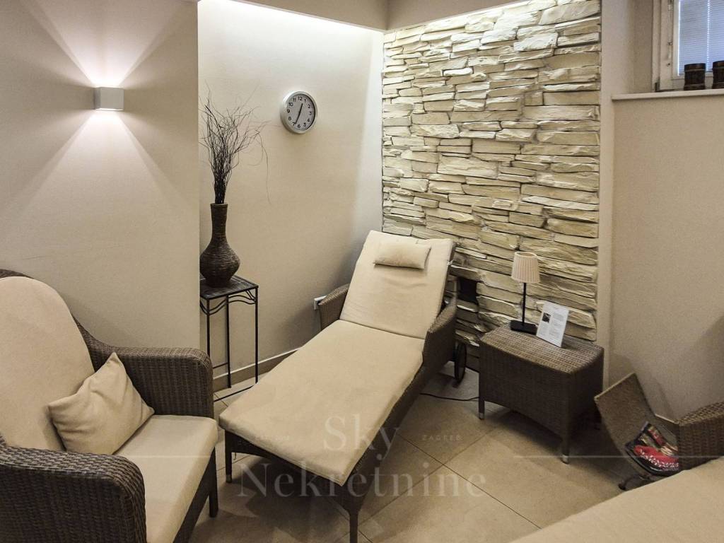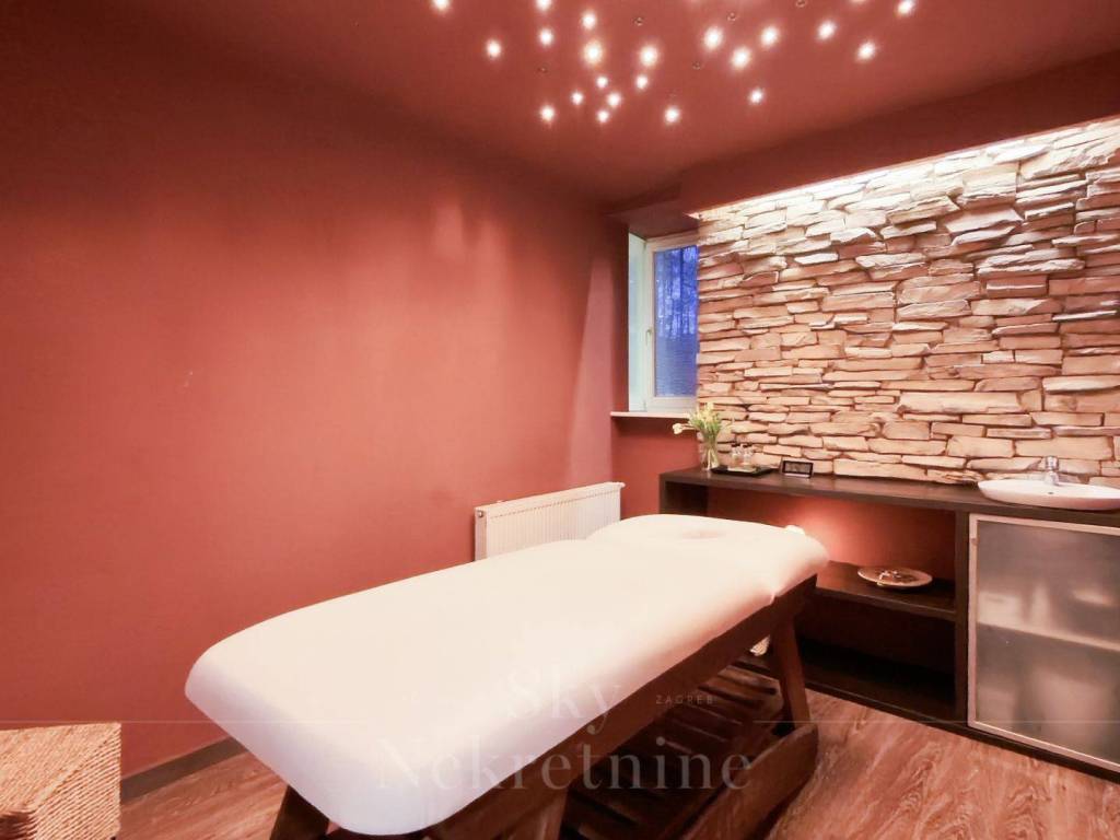 Prostor se nalazi u suterenu zgrade, s površinom od 100 m i dodatnih 15 m za korištenje. Studio uključuje moderno predvorje s dijelom za manikuru i pedikuru, solarij sobu, prostrani hodnik ukrašen bambusom i rijetkim kamenjem, sobu za masažu s tušem, prostoriju za limfnu drenažu, te saunu s dvije ležaljke i dodatnim tušem. Također sadrži toalet za klijente i potpuno opremljenu kuhinju za osoblje te prostranu terasu, koja pruža ugodan prostor za opuštanje na otvorenom.
