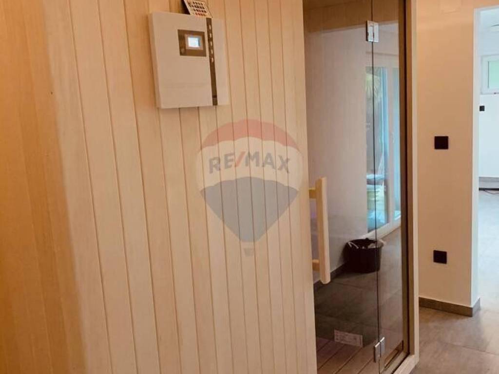 Im Keller gibt es eine finnische Sauna mit eigenem Bad und Dusche für 4 Personen, einen Fitnessraum und einen Pool-Maschinenraum.