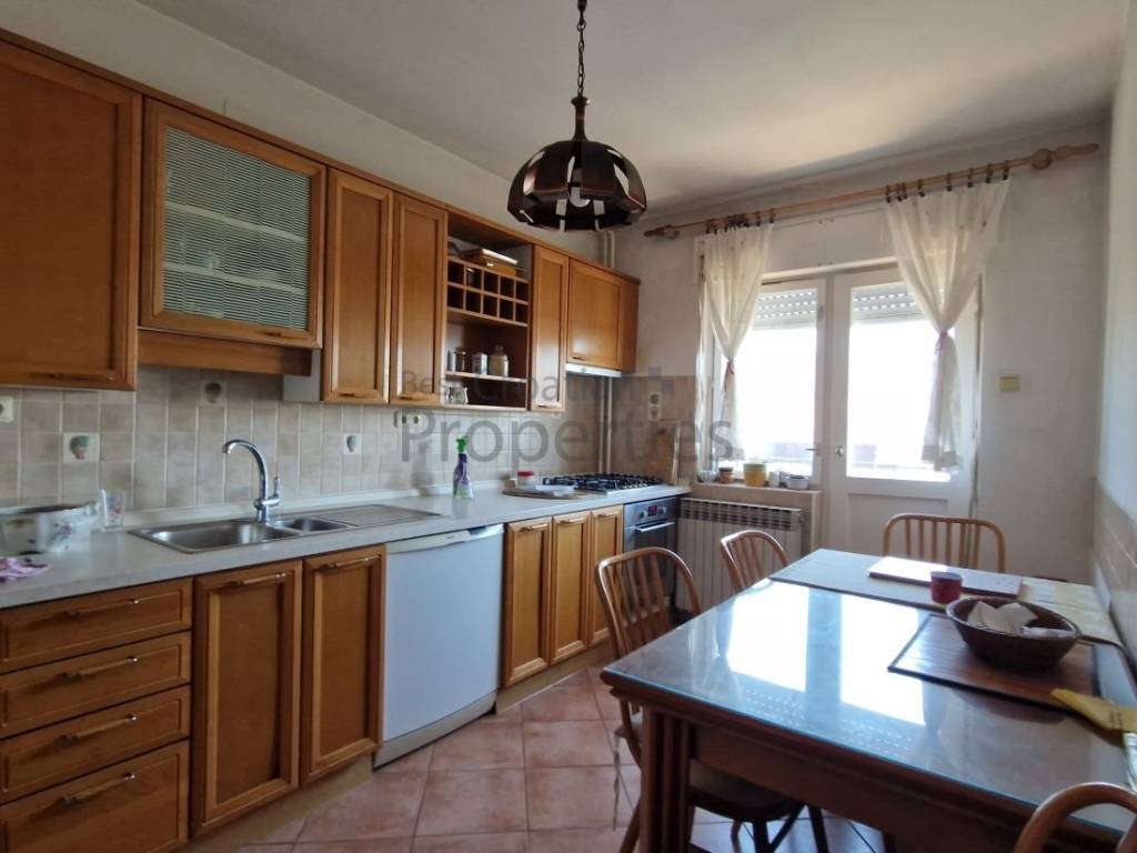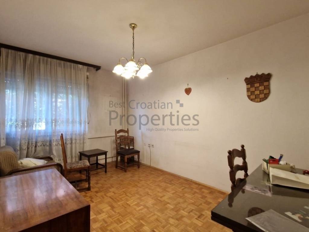 U prizemlju se nalazi dvosobni stan sastavljen od hodnika, kuhinje, kupatila i dvije sobe od kojih jedna izlaz ima lođu sve ukupne površine cca 70 m2.