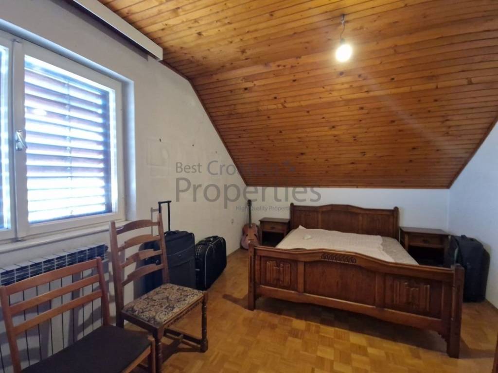 Ova prostrana obiteljska kuća od bruto 398,67 m2 (neto 352,21 m2) sagrađena je 1988. godine u naselju Bukovac, u Ul. Bukovački krč.