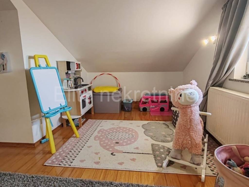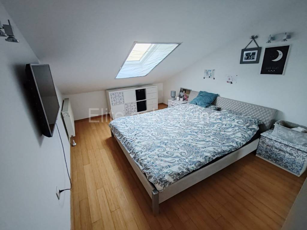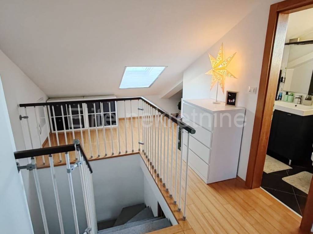 Im Erdgeschoss gibt es einen Flur, ein großes Wohn- und Esszimmer mit Zugang zur Terrasse, eine Küche mit Zugang zum Balkon, ein Badezimmer mit Hydromassage-Badewanne und ein Schlafzimmer mit Zugang zum eigenen Balkon.Im Obergeschoss gibt es eine Eingangshalle mit Stauraum und zwei Schlafzimmer, von denen eines über einen separaten Raum verfügt, der derzeit als Kinderspielzimmer dient. Außerdem gibt es im ersten Stock ein weiteres Badezimmer mit großer Dusche. Velux-Oberlichter.Die Wohnung ist nach Südosten ausgerichtet und ist den ganzen Tag über sehr hell. Die Wohnung bietet einen freien Ausblick, Privatsphäre auf der Terrasse ist garantiert.