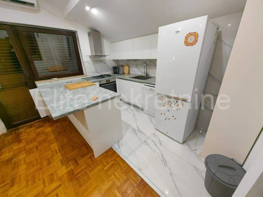 Die Renovierung dieser Wohnung erfolgte im Jahr 2020, wobei maßgefertigte Möbel eingebaut und die PVC-Oberlichter ersetzt wurden, was für eine moderne und komfortable Atmosphäre sorgt.