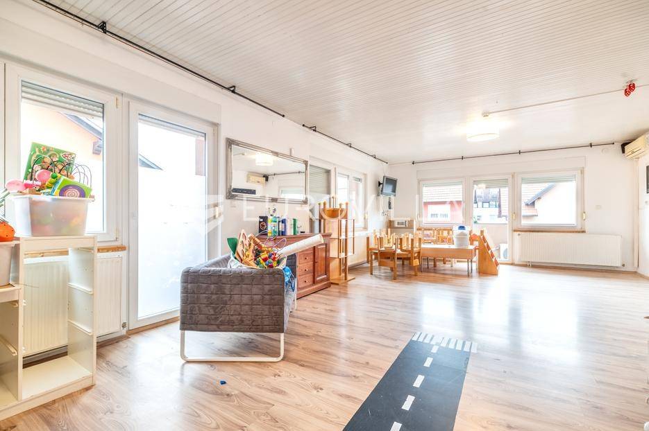 U prizemlju se nalazi dječija igraonicaLokacijaJarun je jedno od najpoželjnijih zagrebačkih naselja - mirno, sigurno i zeleno, s vrhunskom infrastrukturom i izvrsnom prometnom povezanošću.U neposrednoj blizini nalaze se:Jarunsko jezero s rekreacijskim sadržajima, šetnicama i sportskim terenimaškole i vrtićitrgovine, tržnica, restorani i kafićijavni prijevoz (tramvajske i autobusne linije)brzi izlaz na Zagrebačku obilaznicu i autoputLokacija omogućuje brz pristup centru grada, što ovaj stan čini izvrsnim izborom za obitelji, diplomate i poslovne ljude koji žele mir, prostor i sve sadržaje nadohvat ruke.Dodatne značajkeDvije etaže ukupne površine cca 220 m² (prvi kat potpuno uređen, potkrovlje roh-bau s mogućnošću uređenja)Svi priključci: voda, plin, struja, kanalizacija, internetMirna i sigurna ulica s odličnim susjedstvomDva parkirna mjesta unutar ograđenog dijela dvorištaMogućnost dugoročnog najmaVeliki potencijal za obiteljski ili poslovno-stambeni najamOva nekretnina predstavlja rijetku priliku za najam u ovom dijelu grada - prostrana, funkcionalna i prilagodljiva, smještena u jednom od najugodnijih zagrebačkih kvartova.Za dodatne informacije i dogovor oko razgleda, stojimo na raspolaganju na upit.