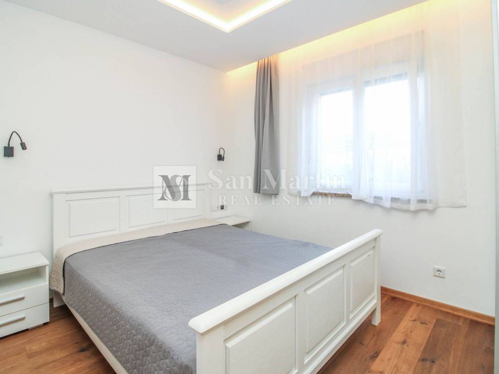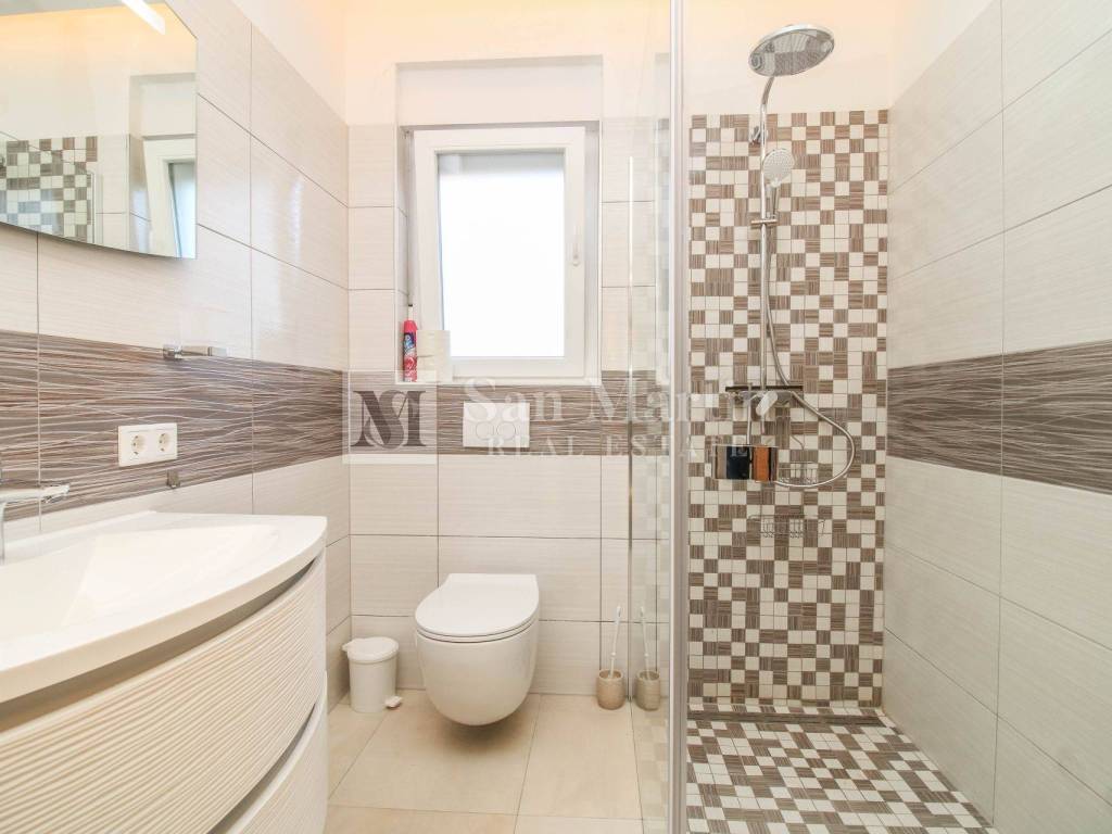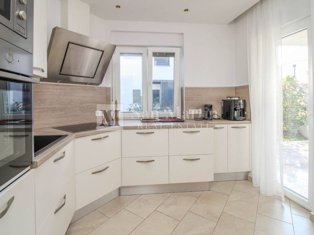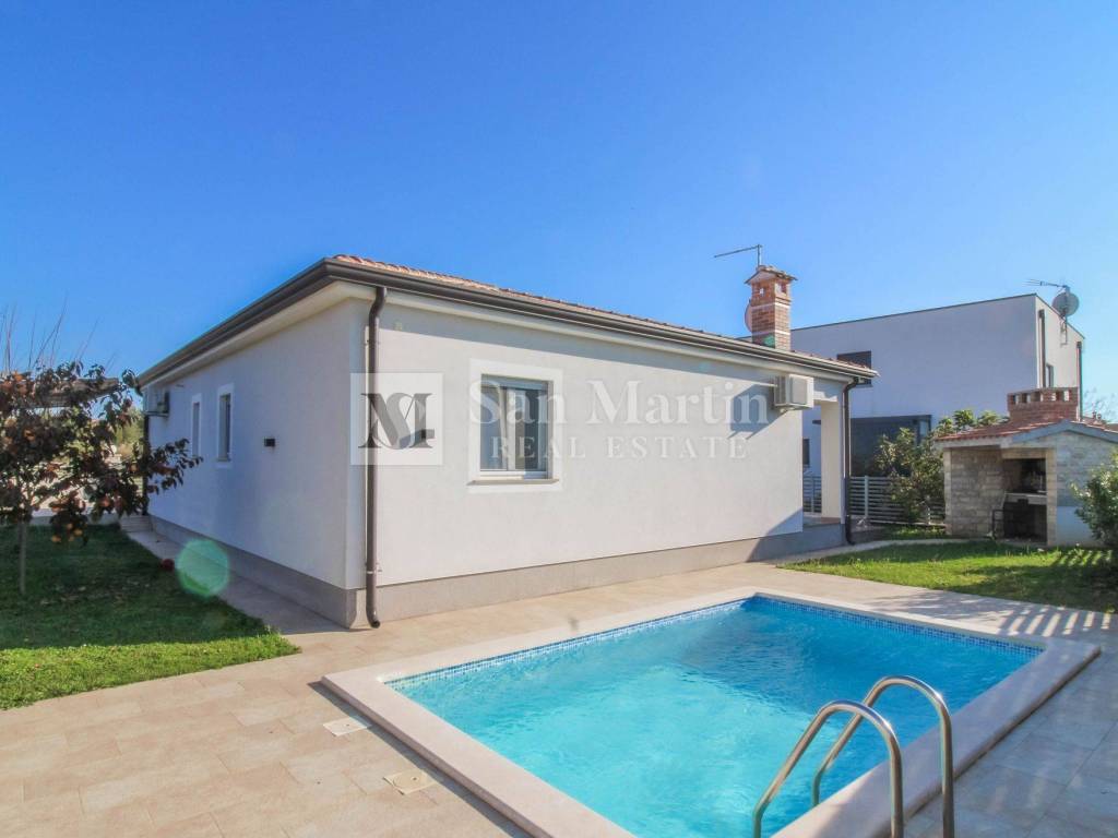 Nur 4 Kilometer vom Zentrum von Poreč und 2 Kilometer vom Meer entfernt, in einer ruhigen und gepflegten Wohnanlage am Ende einer Sackgasse, bietet dieses moderne, ebenerdige Haus absolute Privatsphäre und Komfort.