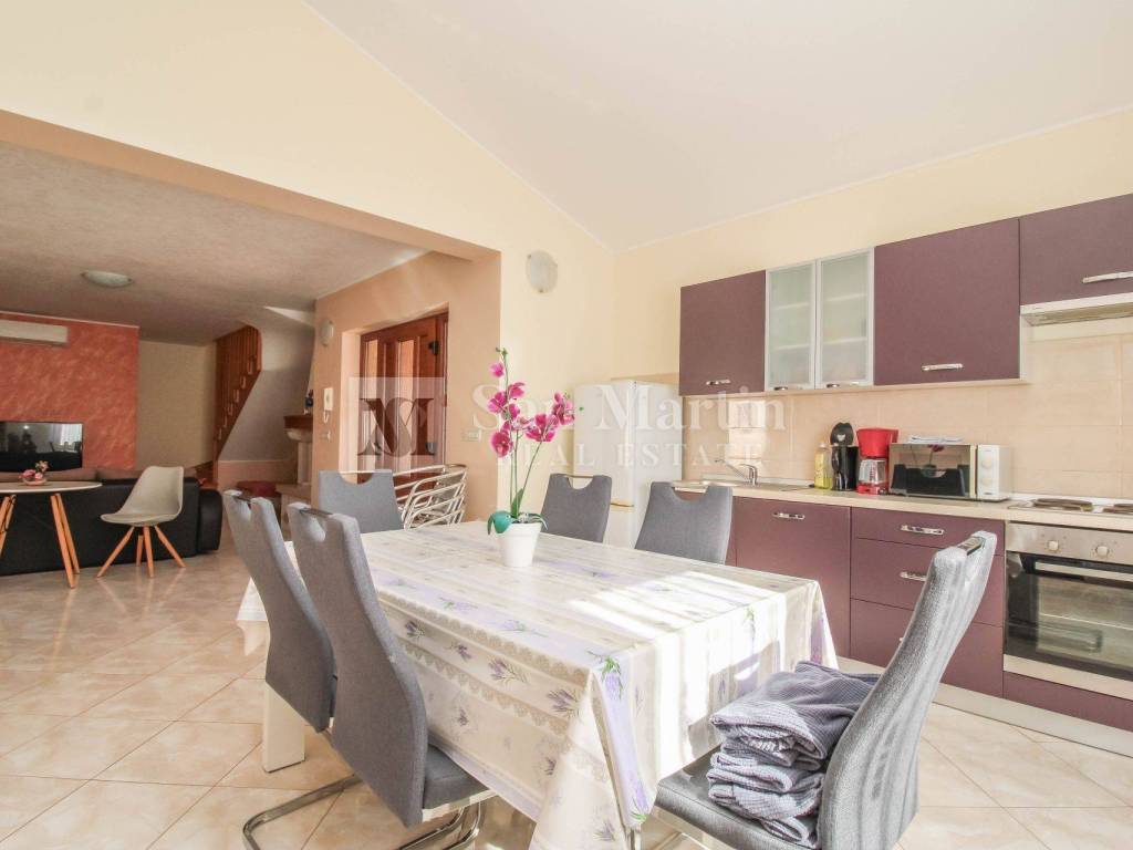 Dieses Einfamilienhaus befindet sich in der Nähe der Stadt Poreč auf einem 598 m2 großen Grundstück. Das Objekt verfügt über eine Gesamtfläche von 140 m2 und erstreckt sich über das Erdgeschoss und das erste Obergeschoss. So gibt es im Erdgeschoss ein geräumiges Wohnzimmer, eine Küche und ein Esszimmer, ein Schlafzimmer und ein Badezimmer. Im Obergeschoss befinden sich zwei weitere geräumige Schlafzimmer, ein Badezimmer und eine geräumige Terrasse.