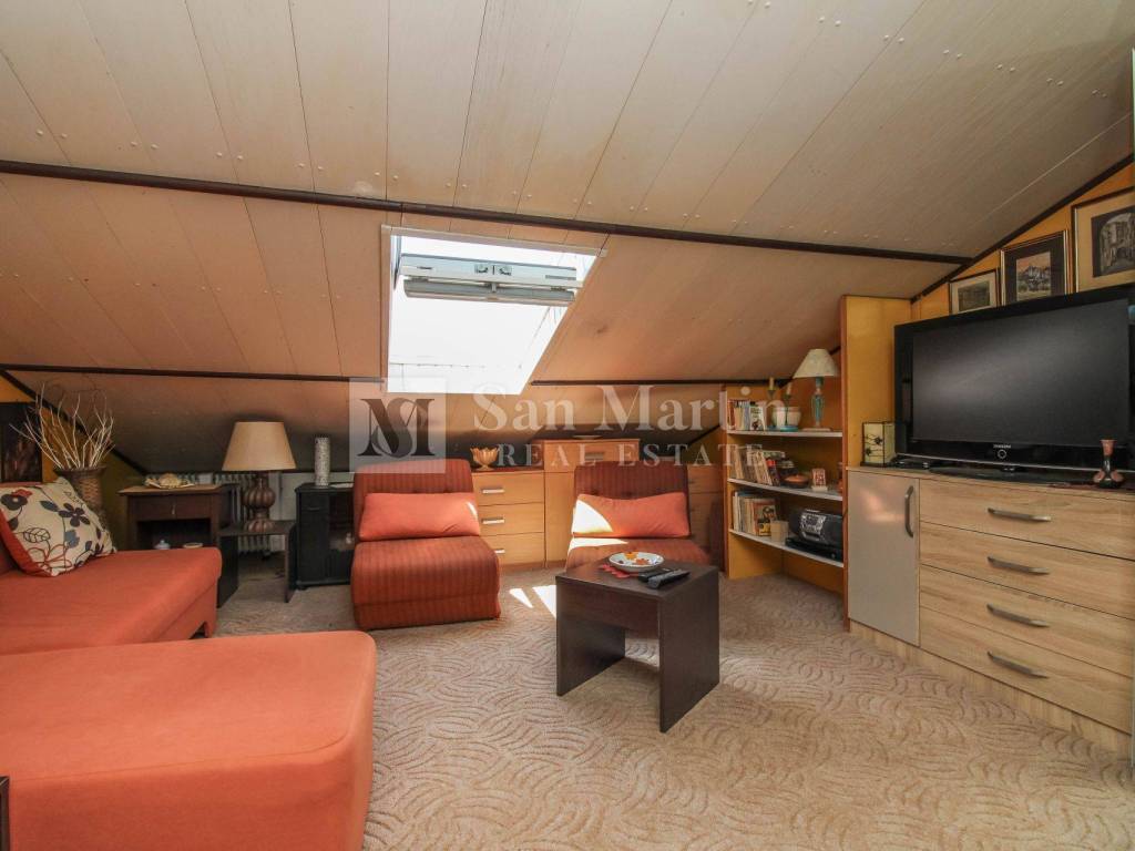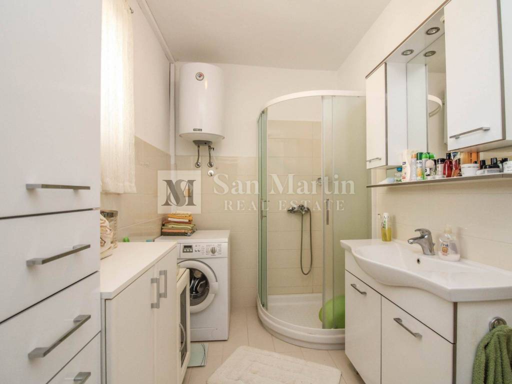 Die Wohnung erstreckt sich über zwei Etagen. Die untere Etage besteht aus Flur, Bad, Küche mit geschlossener Loggia, zwei Schlafzimmern, Wohnzimmer und einer großzügigen Terrasse mit atemberaubendem Meerblick. Im Dachgeschoss befindet sich eine zusätzliche, separate Wohneinheit mit eigenem Bad, Küche, Abstellraum sowie Schlaf- und Wohnbereich ideal für Gäste oder als privater Rückzugsort.