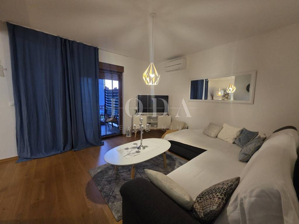 Die Wohnung ist mit neuen und modernen Möbeln ausgestattet, verfügt über hochwertige PVC-Fenster mit Rollläden, und auf dem Balkon befindet sich eine Markise, die den ganzen Tag über ein angenehmes Ambiente bietet.