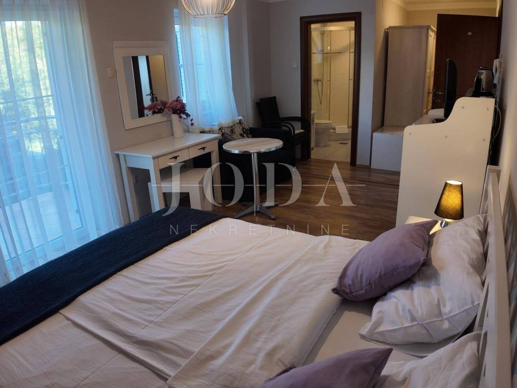Zusätzlich verfügt die Immobilie über eine großzügige Taverne, die als Gemeinschaftsraum für Gäste genutzt oder nach den Wünschen des Investors umgestaltet werden kann. Der gepflegte Außenbereich bietet einen Pool mit Sonnendeck, der hohen Komfort und Privatsphäre gewährleistet. Außerdem ist ein eigener Parkplatz vorhanden, was im Tourismussektor einen entscheidenden Vorteil darstellt.