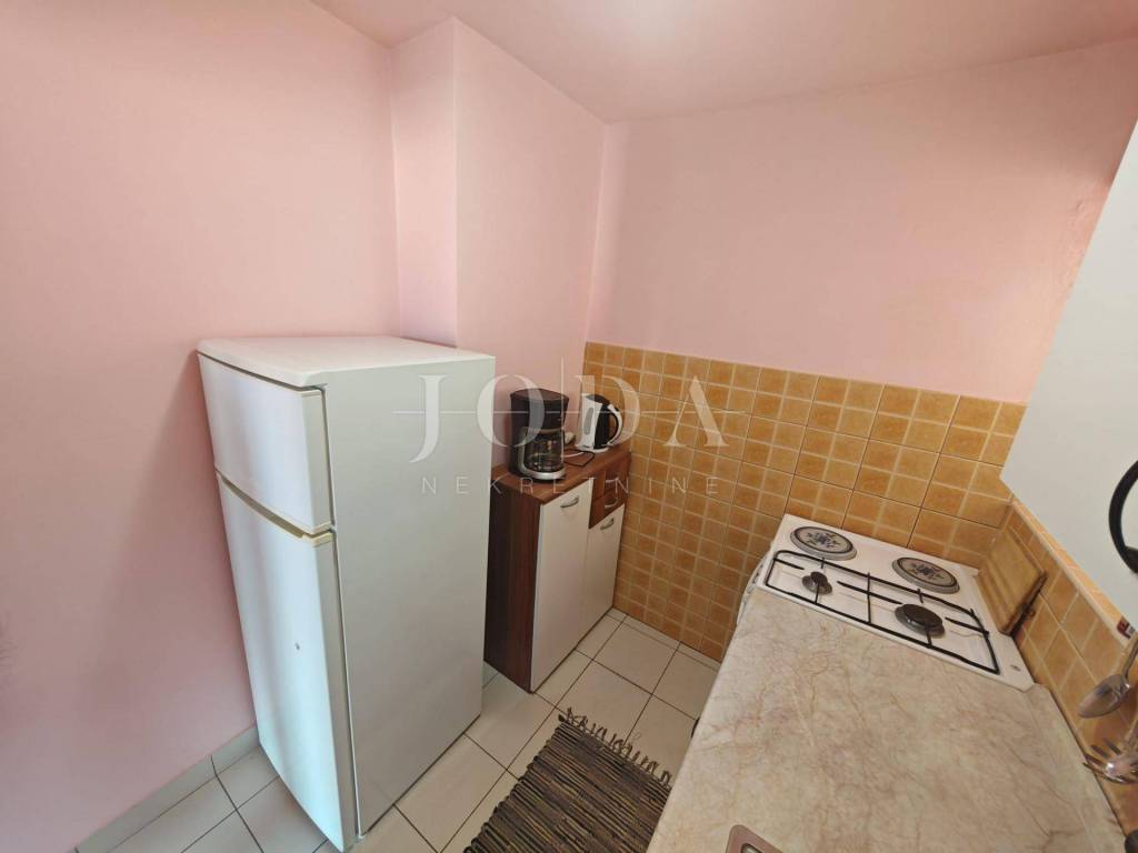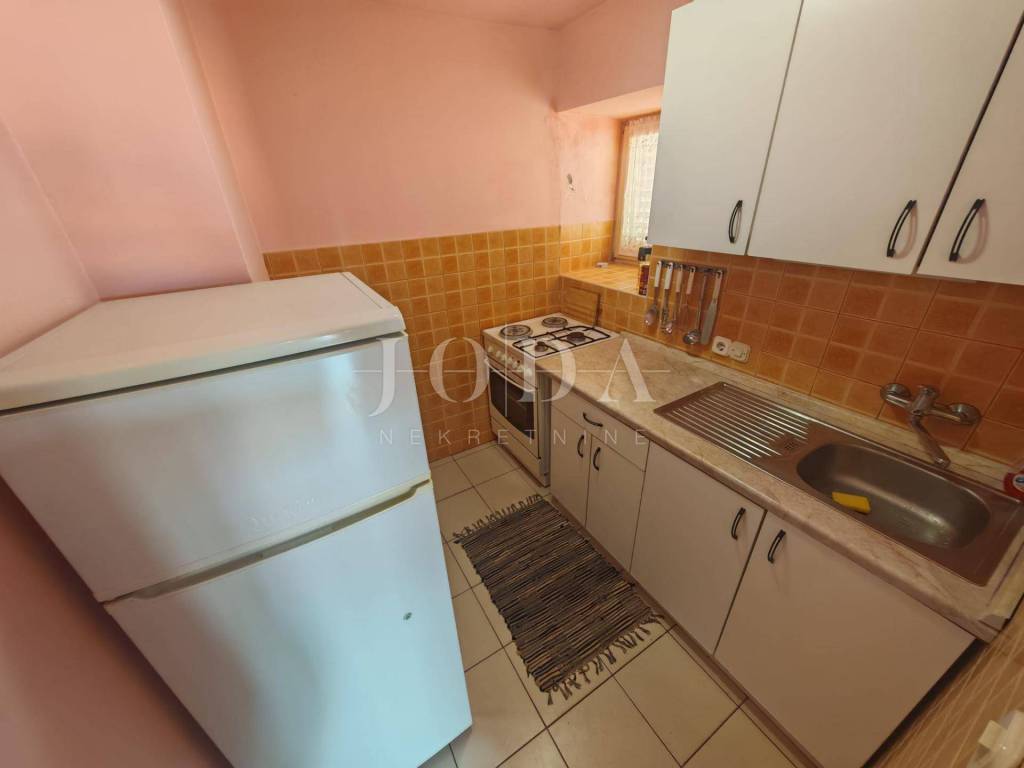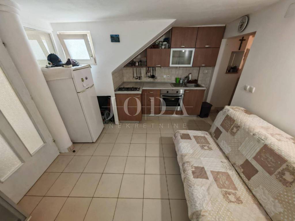Erdgeschosswohnung (teilweise begraben) mit Eingangsterrasse, Wohnzimmer mit Küche, Bad und Schlafzimmer.