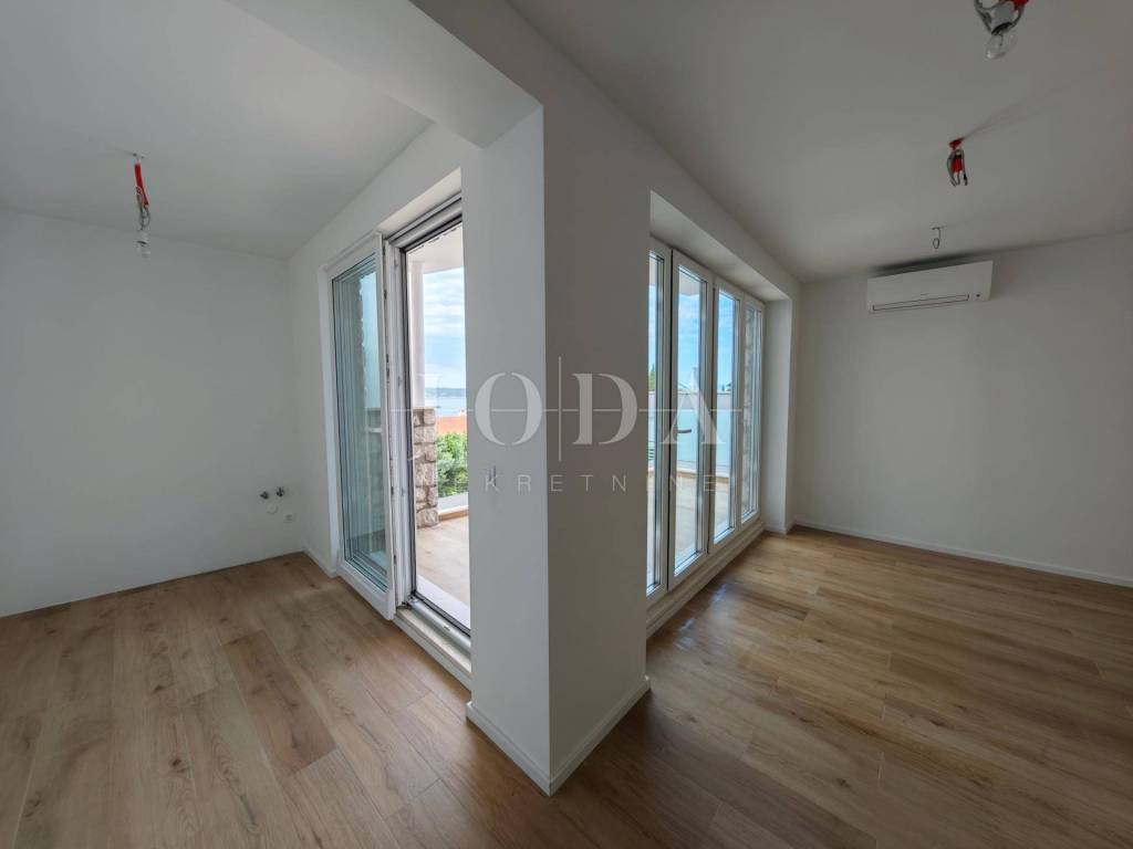 Die Wohnung befindet sich im obersten Stockwerk eines neu rekonstruierten Gebäudes mit drei Einheiten, fertiggestellt im Juli 2025, mit Meer- und Yachthafenblick.