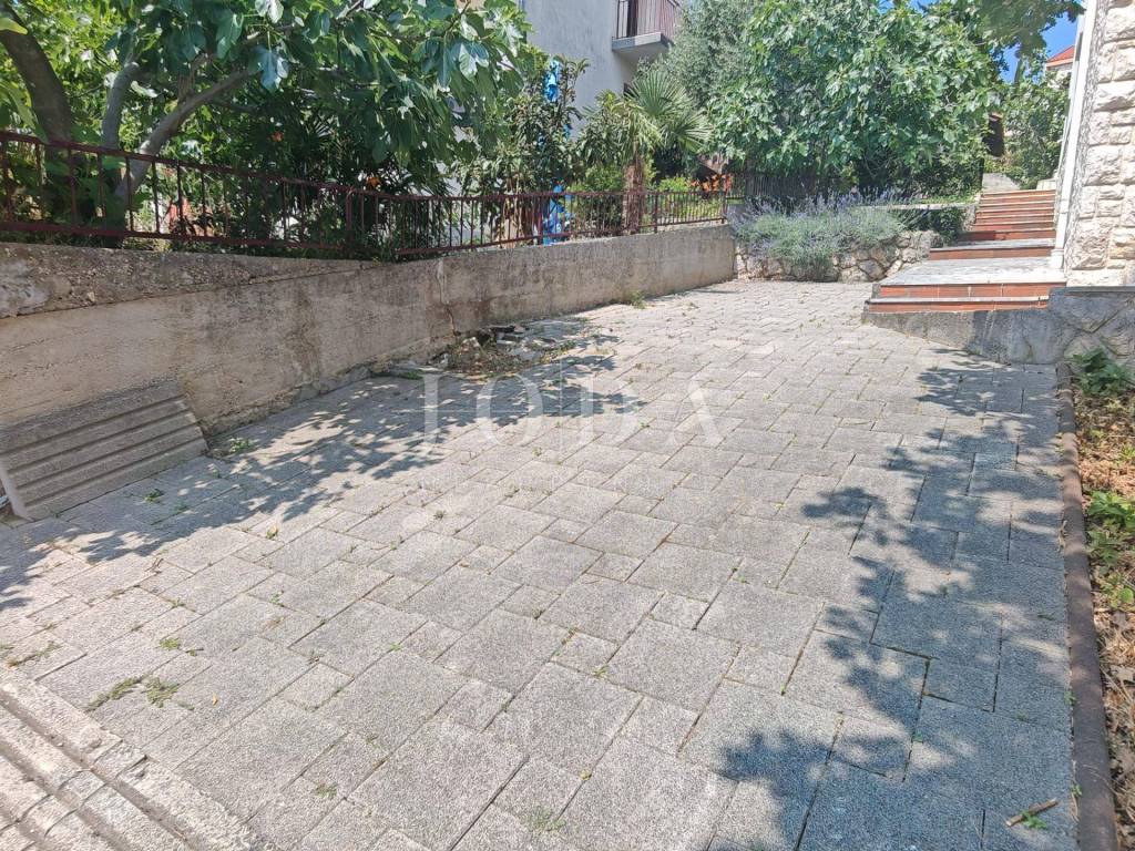 Zur Wohnung gehört außerdem ein 60 m großer Garten, der teilweise als Parkplatz für zwei Autos genutzt werden kann (gepflasterter Teil), während der restliche Teil nach Belieben gestaltet werden kann (Grünfläche).