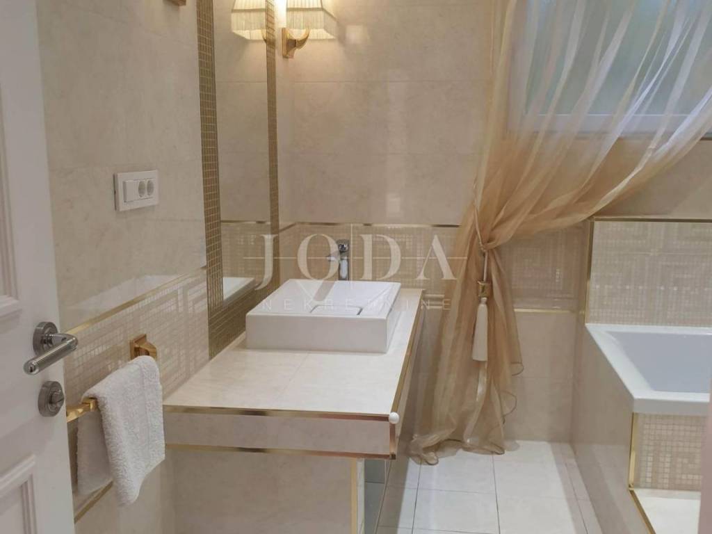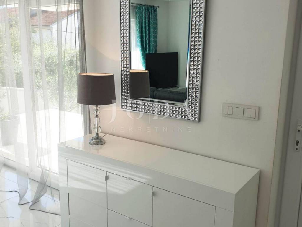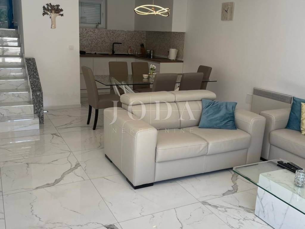 Das modern und hochwertig ausgestattete Haus erstreckt sich über drei Etagen mit einer Gesamtfläche von ca. 200 m. Die Hauptwohnung des Eigentümers befindet sich im Erdgeschoss und im ersten Stock, mit einer Fläche von 133 m. Im Erdgeschoss befindet sich ein großzügiger Wohnbereich mit offener Küche und Essbereich, der sich harmonisch zu zwei großen Gartenterrassen auf beiden Seiten des Hauses öffnet ideal für geselliges Beisammensein im Freien. Zusätzlich gibt es ein Gäste-WC und einen Abstellraum unter der Treppe.