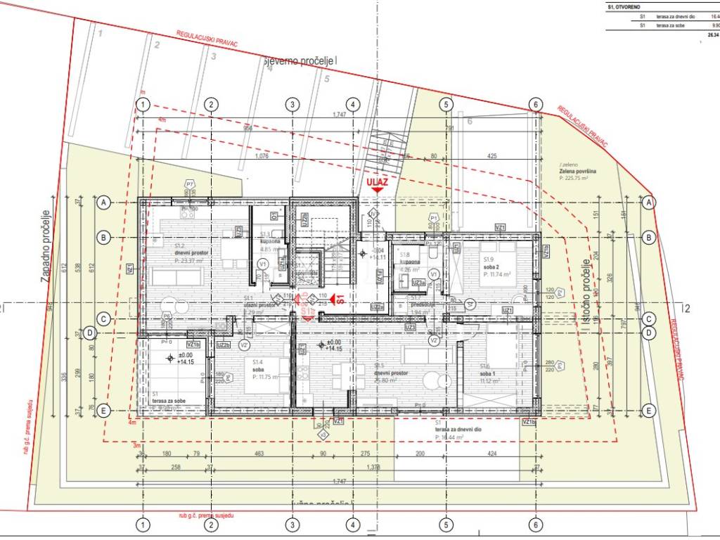 Das Gebäude besteht aus sechs Wohnungen, von denen jede über einen eigenen Parkplatz verfügt, und das Objekt unterliegt der Mehrwertsteuer (MwSt.).