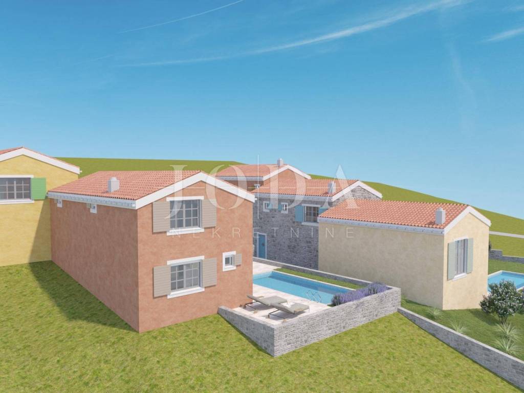 Auf dem größeren Grundstück entstanden Bauplätze für 5 Gebäude mit jeweils einem Garten und einem Swimmingpool.