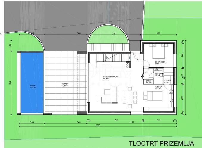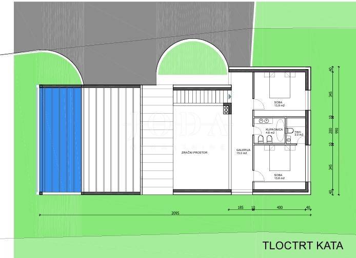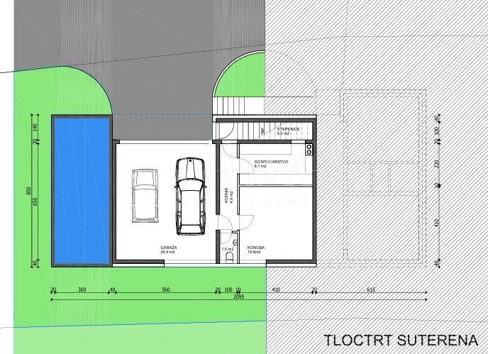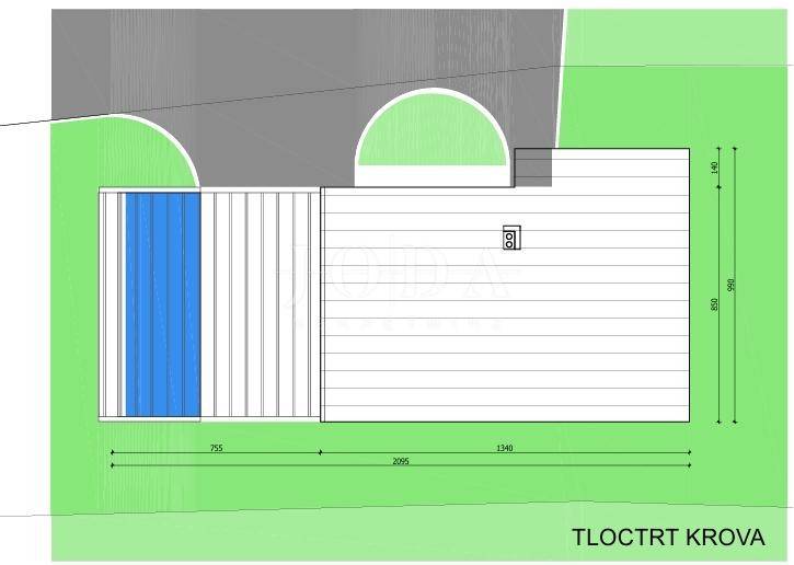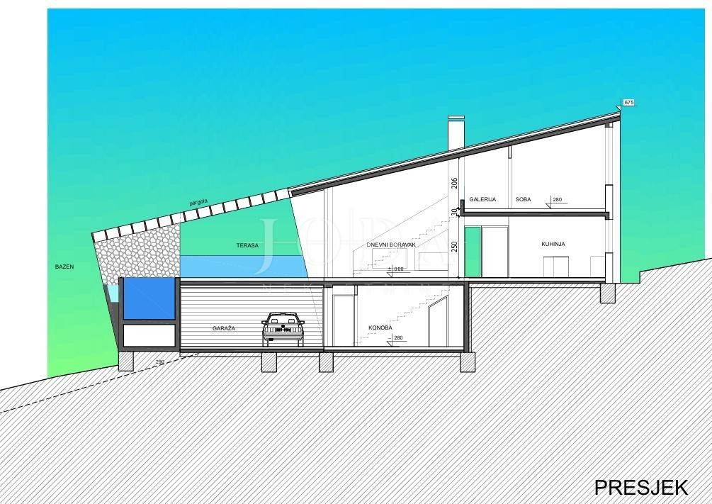 Wir verkaufen Bauland mit einem konzeptionellen Projekt für ein Haus mit Schwimmbad in Bakarac.
