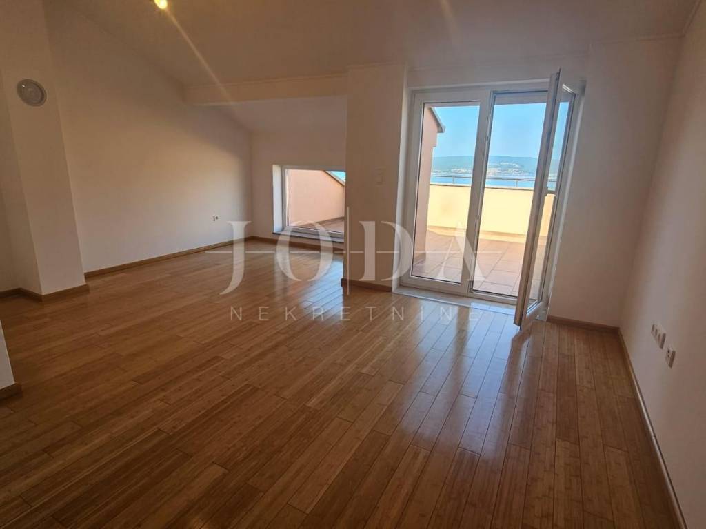 Die Wohnung im Untergeschoss verfügt über ein Schlafzimmer, ein Badezimmer und ein großes Wohnzimmer, eine Küche und eine Loggia. Eine Wendeltreppe führt in den oberen Teil der Wohnung, wo sich ein großer Raum mit Zugang zu zwei Terrassen, ein Badezimmer und ein Mehrbettzimmer befinden. Zweckbereich am Hang.