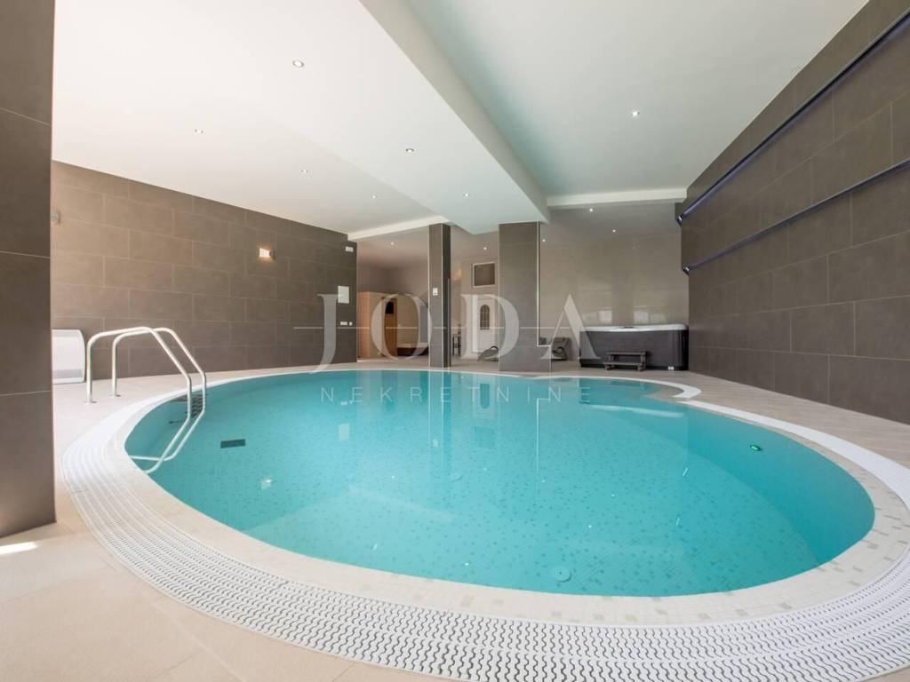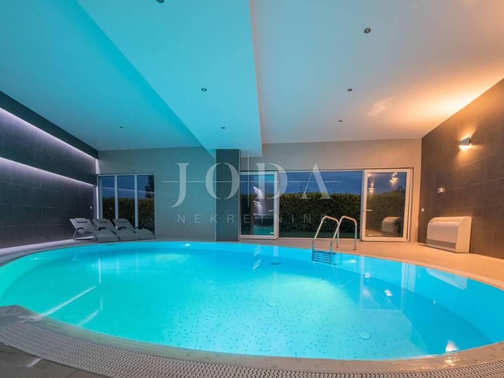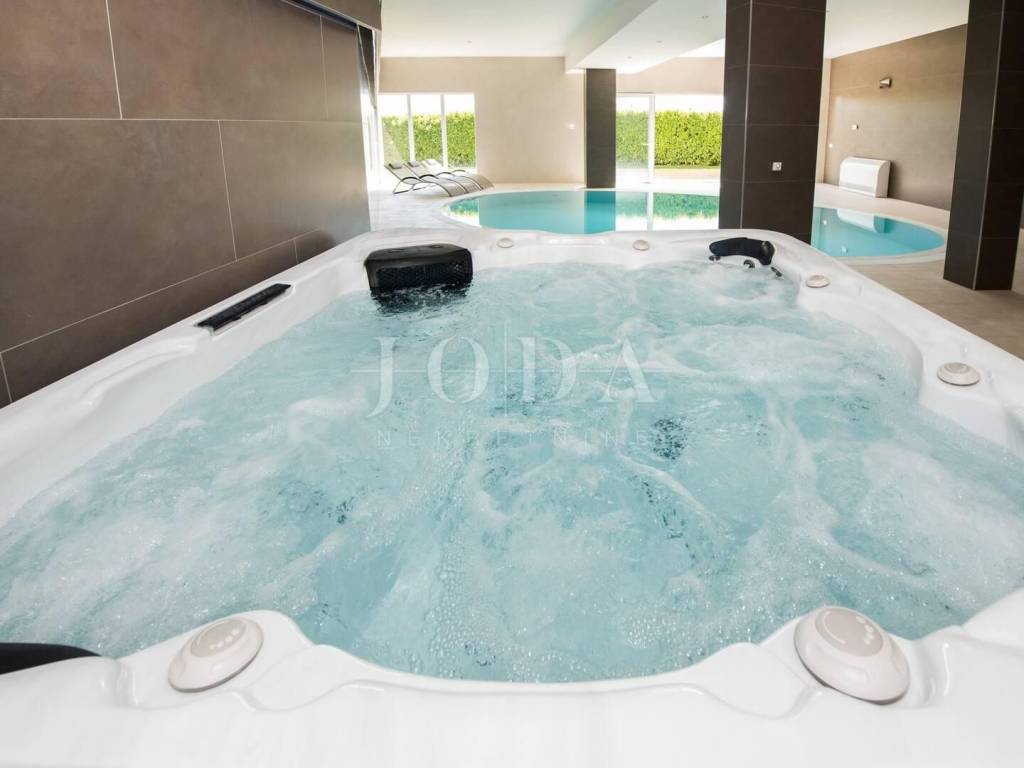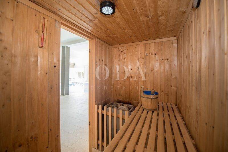 Sie verfügt über zwei große Swimmingpools (außen und innen), Whirlpool, Sauna und Fitnessraum. Die Villa verfügt über eine geräumige Terrasse mit Blick auf das Meer und die Stadt Split und eignet sich zum Genießen und Entspannen mit einem Grill.