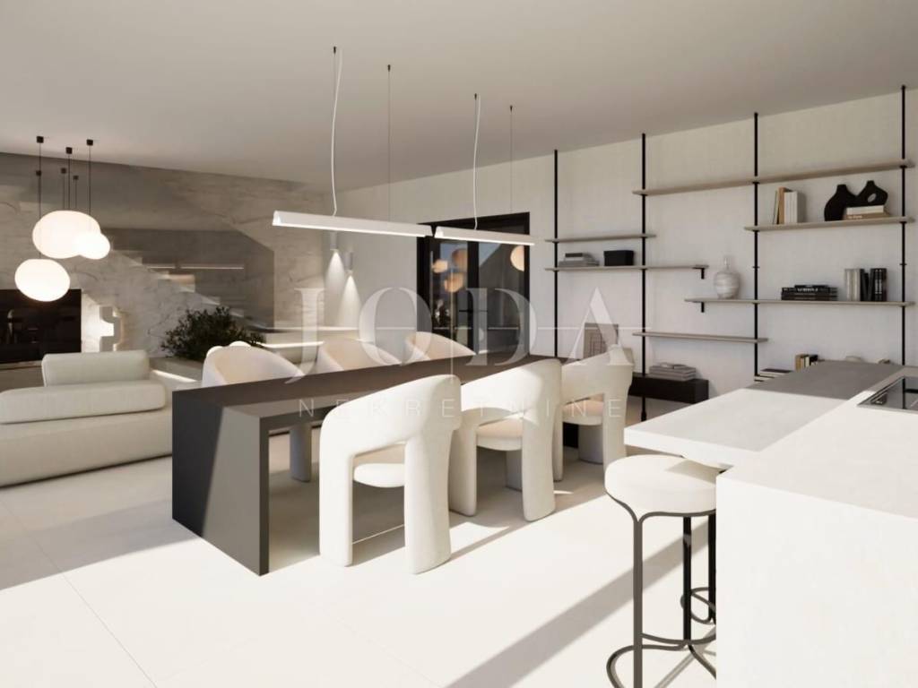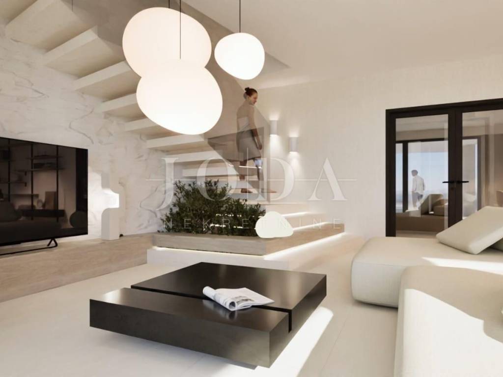 Das Konzept einer zweistöckigen Wohnung mit einem großen Infinity-Pool vor dem Haus und einem Garten auf der Rückseite sorgt für Intimität und einen Hauch von Luxus.