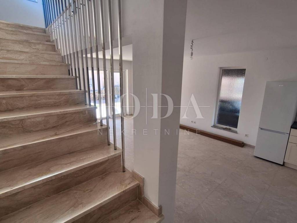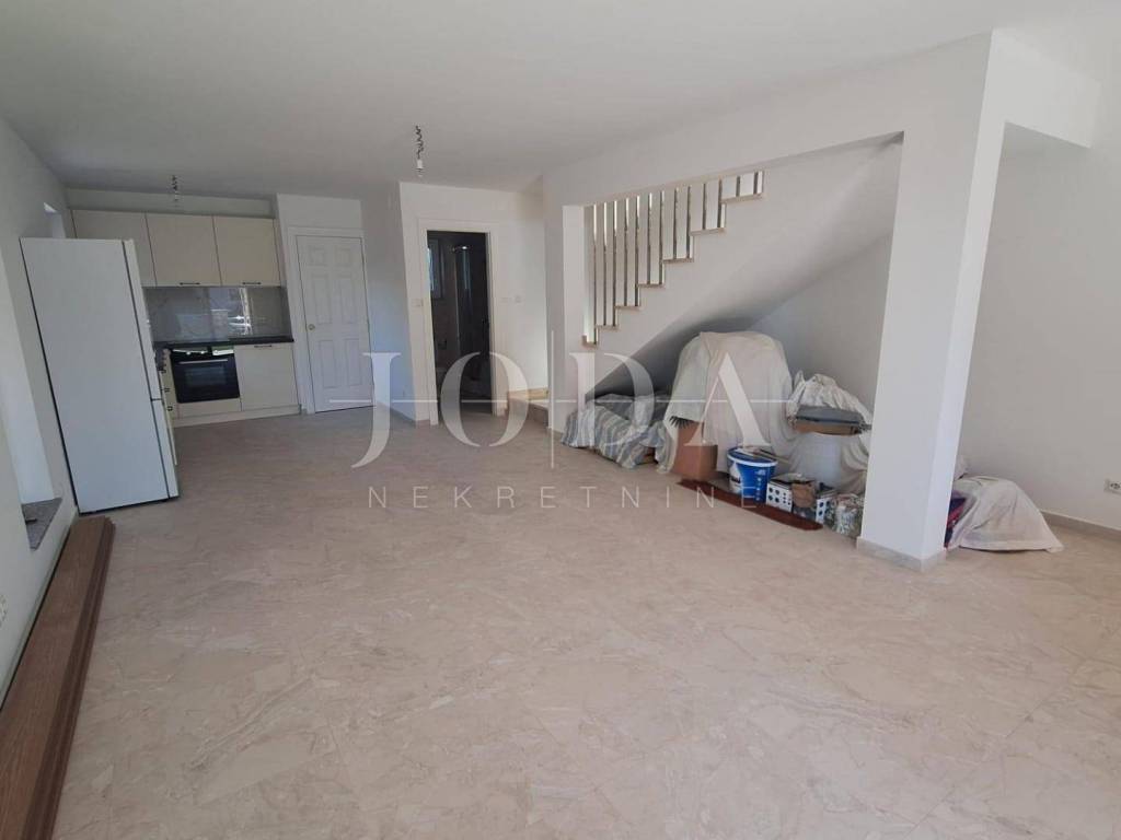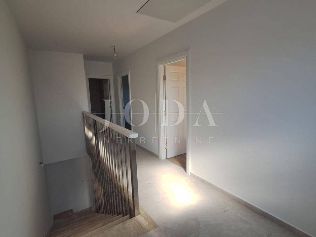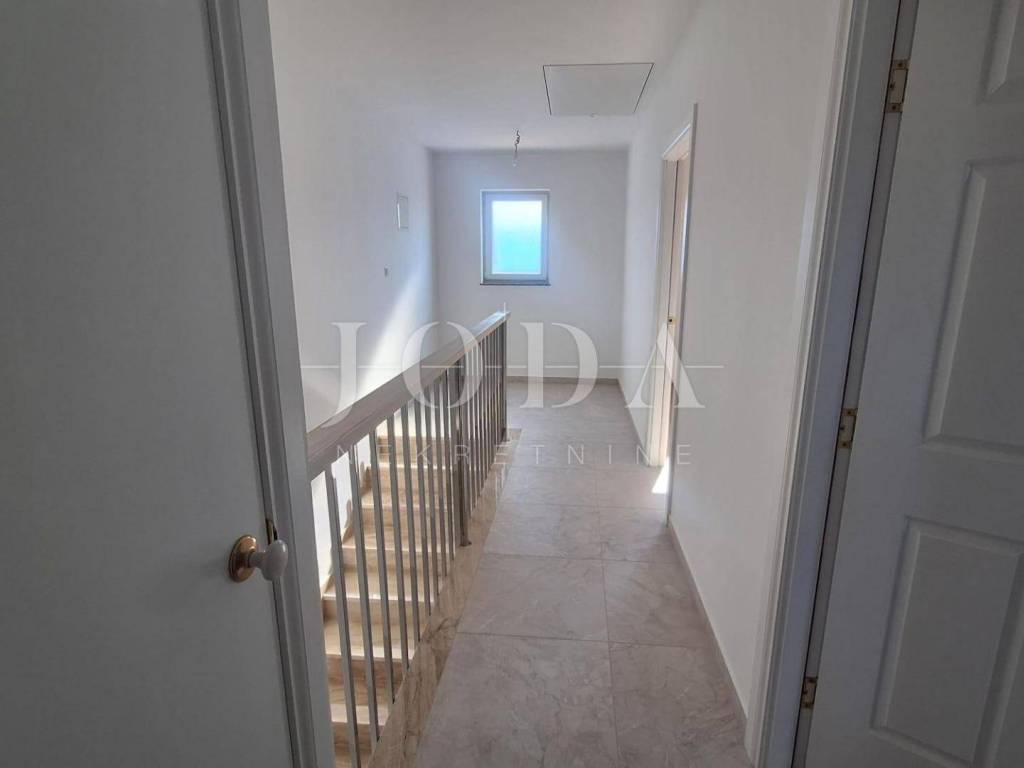 Zum Verkauf steht ein neues Einfamilienhaus mit zwei Maisonette-Wohnungen. Jede Wohneinheit im Erdgeschoss verfügt über ein offenes Wohnzimmer, eine Küche, ein Esszimmer, ein Badezimmer und einen Ausgang zur Terrasse und zum Garten mit Swimmingpool und Liegewiese. Im ersten Stock befinden sich zwei Schlafzimmer, ein Abstellraum und ein Badezimmer.