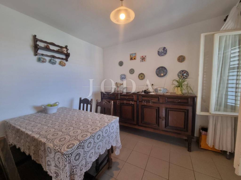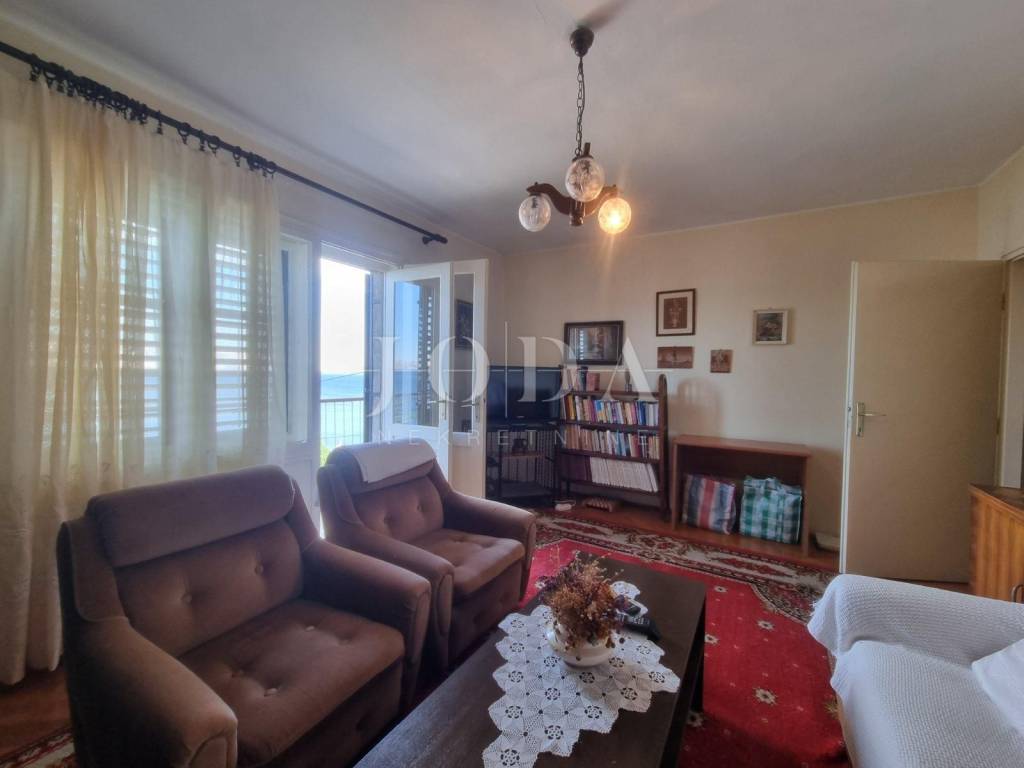 Wir verkaufen eine Wohnung im ersten Stock des Hauses, nur 75 m vom Meer entfernt. Die Wohnung besteht aus drei Schlafzimmern, einem Wohnzimmer, einer Küche, einem Esszimmer, einem Flur, einem Badezimmer und einem Balkon mit wunderschönem Blick auf das Meer. Der Dachboden hat einen Eingang direkt von der Wohnung und kann zusätzlich genutzt werden Lagerung. Im Erdgeschoss des Hauses gibt es eine Terrasse von 30 m2, eine Garage und zwei Abstellräume. Der Kaskadengarten ist mit mediterranen Pflanzen bepflanzt, angelegt und gepflegt. Das Anwesen befindet sich in ausgezeichneter Lage, nicht weit von allen notwendigen Einrichtungen entfernt und verfügt über großes Potenzial für die Dekoration nach persönlichen Bedürfnissen und Wünschen.
