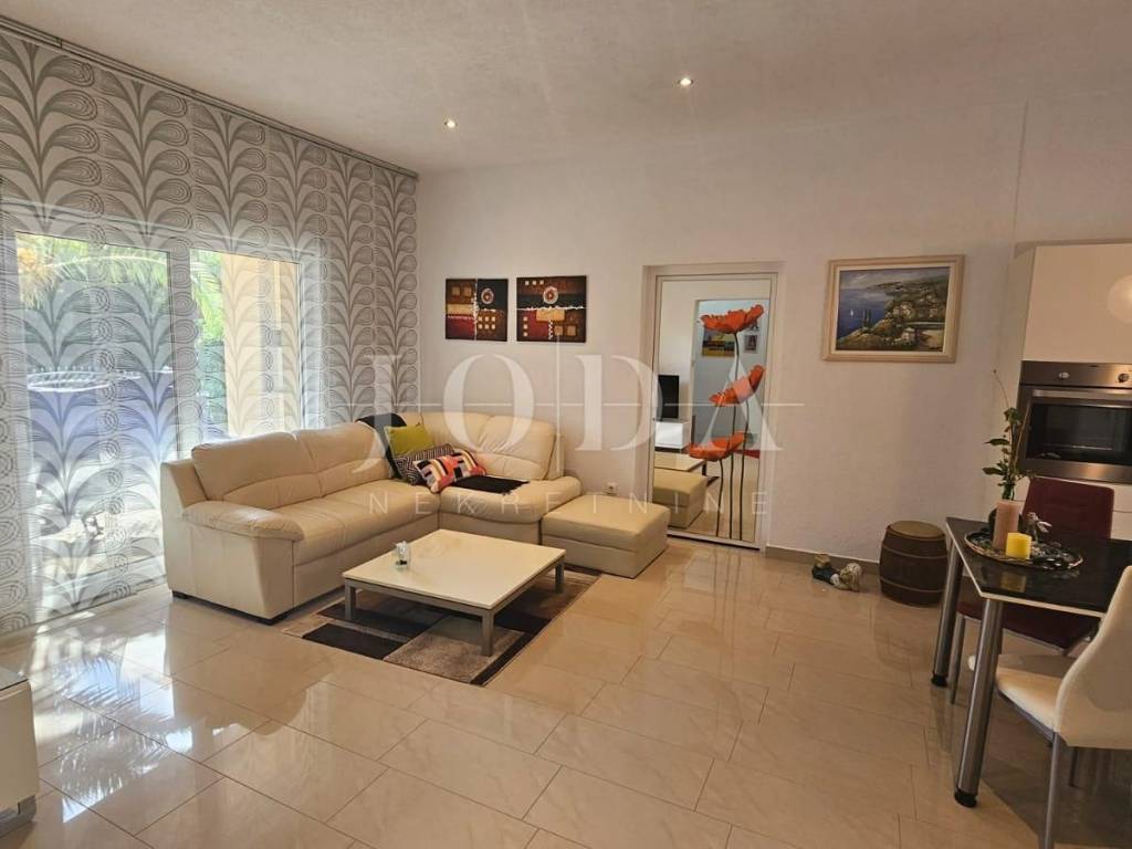 Ein ausgezeichnetes Einfamilienhaus, nicht einmal 200 Meter vom Meer entfernt, mit eingezäuntem und angelegtem Garten, komplett ausgestattet und möbliert zu verkaufen.