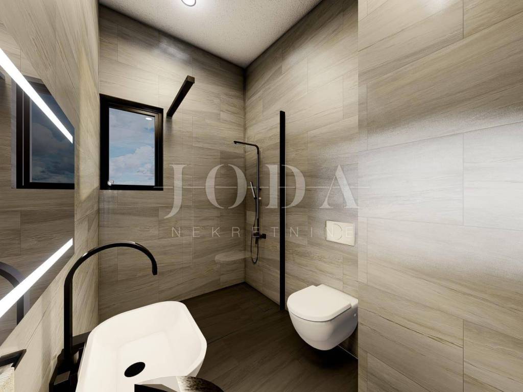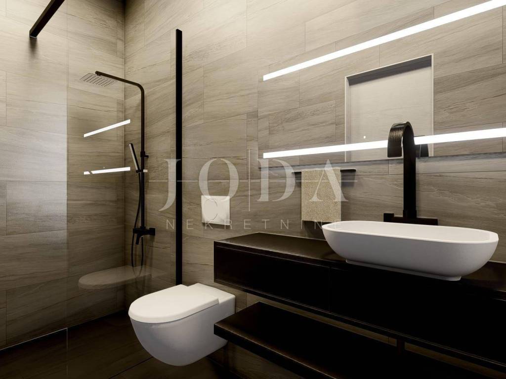 Das Penthouse befindet sich im zweiten Stock eines kleineren Wohnhauses. Die Fläche des Innenraums beträgt 97,68 m2 und die Terrasse 51,68 m2. Es besteht aus einem Flur, einem Wohnzimmer, einer Küche mit Esszimmer, drei Schlafzimmern, zwei Badezimmern, einem Abstellraum und drei Terrassen. Das Wohnzimmer und ein Schlafzimmer haben Zugang zu einer Terrasse von 15 m2, und die Küche und das Esszimmer haben Zugang zu einer Terrasse von 37,50 m2. Es gibt zwei Parkplätze.