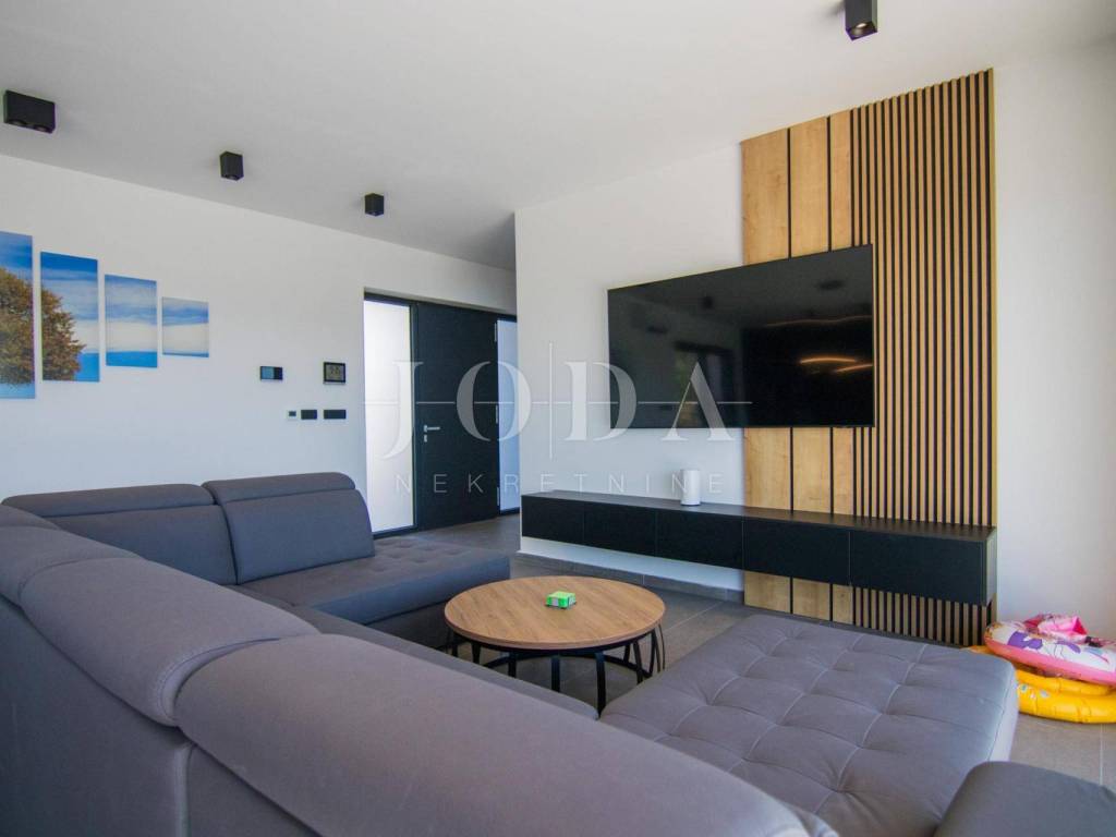 Das Haus mit einer Wohnfläche von insgesamt 180 m erstreckt sich über das Erdgeschoss und das Obergeschoss. Im Erdgeschoss befinden sich eine Garage mit 21,70 m, ein großzügiges Wohnzimmer mit Küche und Essbereich, ein Abstellraum mit Waschmaschine und Trockner, ein Flur, ein Badezimmer sowie ein Fitnessraum.