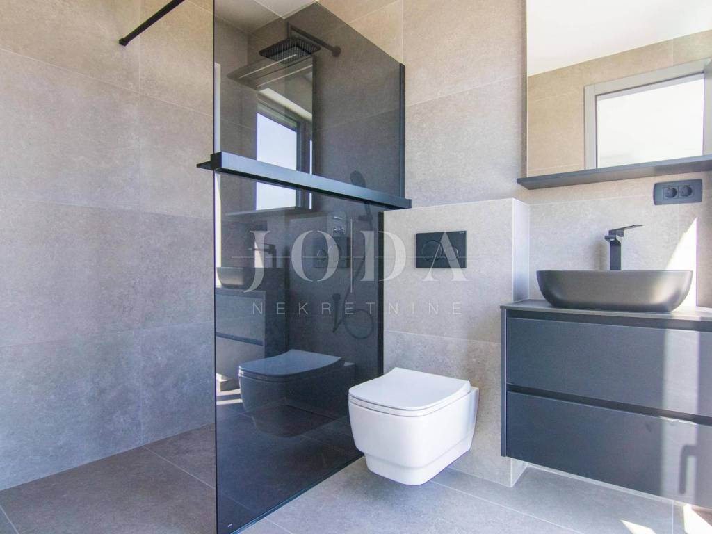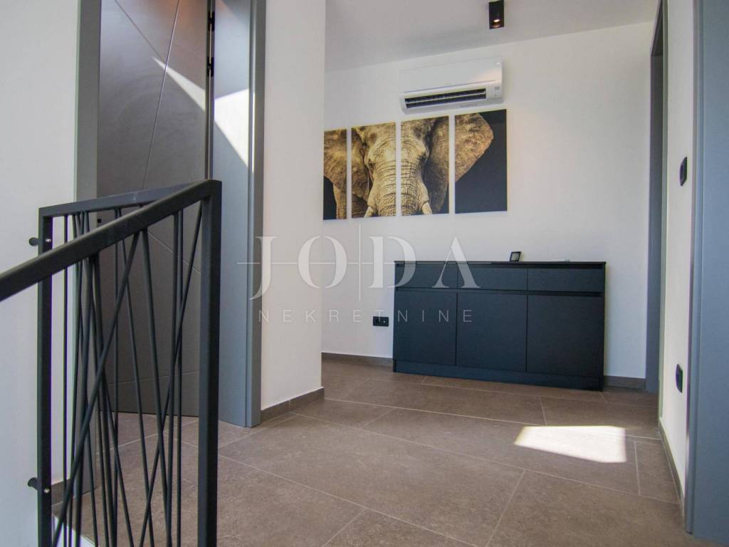 Im Obergeschoss befinden sich vier Schlafzimmer, vier Badezimmer und ein Flur mit Treppenhaus. Drei Schlafzimmer haben Zugang zu einem gemeinsamen Balkon, von dem aus sich ein wunderschöner Blick auf Olivenhaine und das Meer in der Ferne eröffnet.