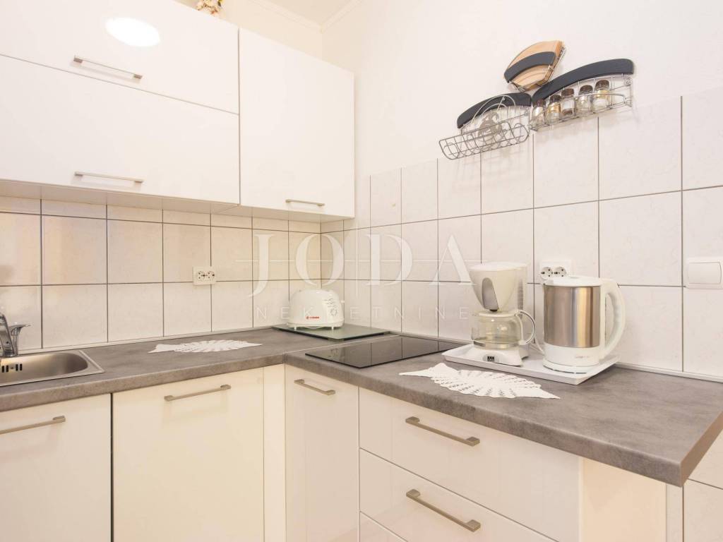 Innerhalb des vollständig angelegten Gartens befinden sich zwei miteinander verbundene Gebäude. Im Erdgeschoss befinden sich 4 Einzimmerwohnungen mit Balkon sowie große Garagen und großzügige Parkplätze. Im ersten und zweiten Stock befinden sich Dreizimmerwohnungen mit großen Terrassen. Hinter dem Haus befindet sich ein Raum zum geselligen Beisammensein mit Swimmingpool und Liegewiese. Das Haus wird touristisch genutzt.