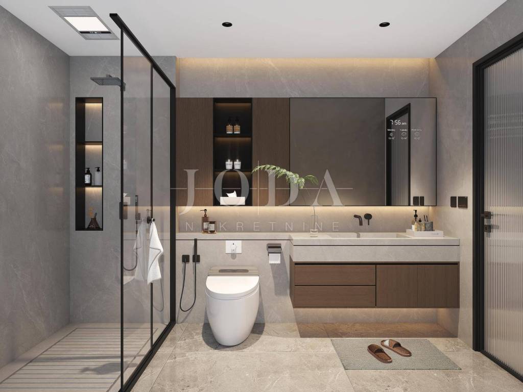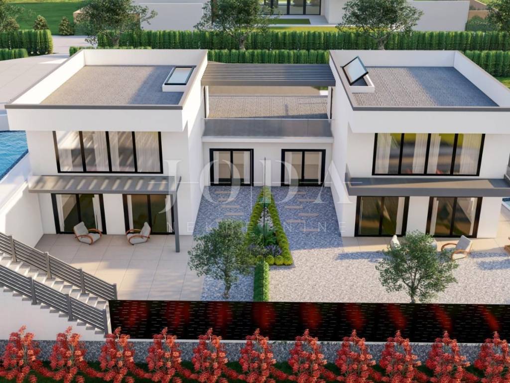 Modernes Projekt, hochwertige Konstruktion und Ausstattung, ruhige Lage in einer wunderschönen Nachbarschaft, umgeben von Einfamilienhäusern und Villen, ca. 1 km vom Meer entfernt.