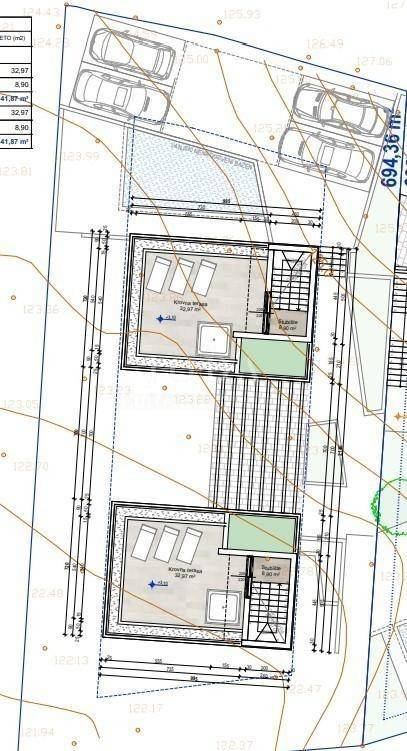 Doppelhaushälfte mit einer Gesamtfläche von 146 m2 mit ca. 250 m2 Garten. Das Haus befindet sich derzeit im Bau und wird aus drei Etagen bestehen. Das Erdgeschoss wird über drei Schlafzimmer, einen Flur und zwei Badezimmer sowie einen Abstellraum verfügen. Eine Innentreppe führt in den ersten Stock, wo sich ein geräumiges Wohnzimmer mit Küche und Essbereich, Flur und Toilette befindet. Innentreppe führt zur Dachterrasse mit Jacuzzi. Die Dachterrasse bietet einen Panoramablick auf das Meer. Der gepflegte Garten verfügt über einen privaten Pool mit Sonnendeck, Sommerküche mit Grill und zwei Parkplätze.