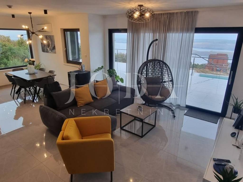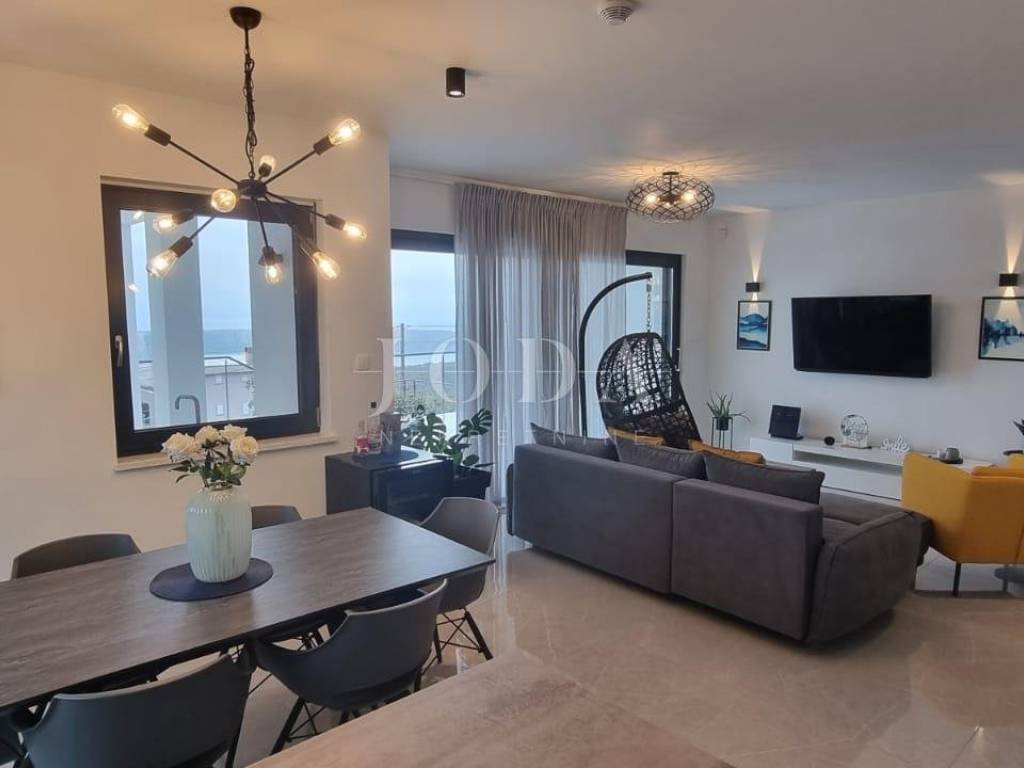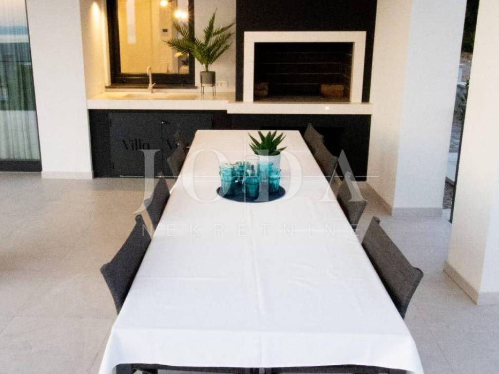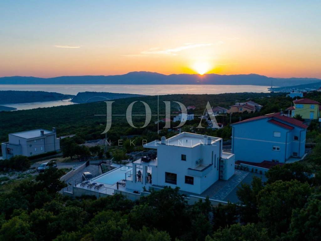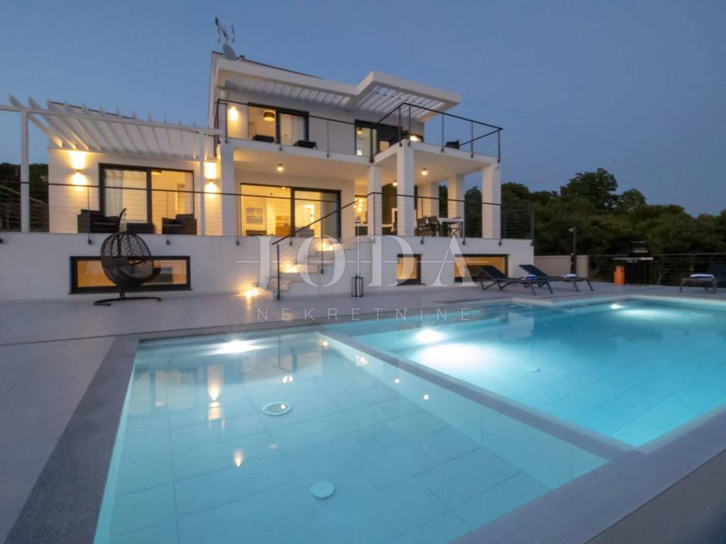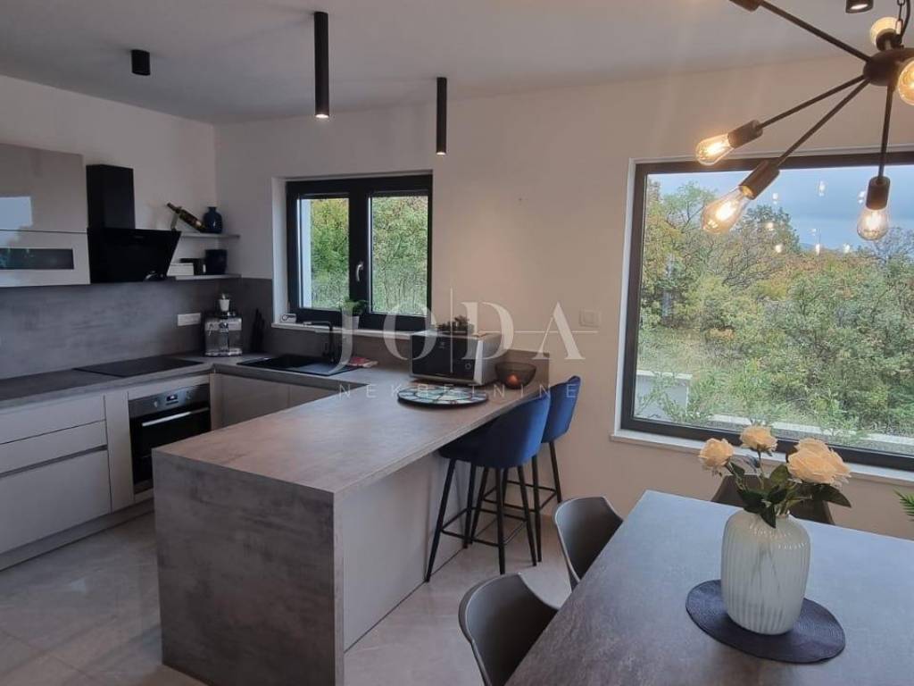 Freistehendes Einfamilienhaus am Rande des Grüngürtels mit spektakulärem Blick auf Kvarner. Das Haus wurde sowohl im Innen- als auch im Außenbereich mit hochwertigen Materialien gebaut.