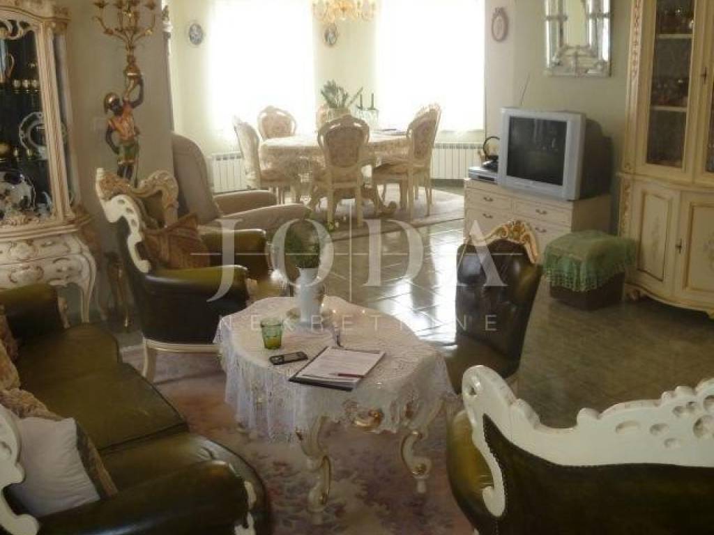 Auf 1600 m2 Garten, umgeben von einer Steinmauer, befindet sich ein bemerkenswertes Anwesen. Die Villa wurde nach hohen Standards und für Familienzwecke gebaut. Es besteht aus drei Stockwerken: einem Keller mit einer Taverne und einem Raum mit einem Zentralheizungsofen. Im Erdgeschoss befindet sich eine Eingangshalle, die den Wohnbereich von der Innentreppe (mit erstklassigem Stein gepflastert) trennt, die alle drei Etagen verbindet. Im Wohnbereich des Erdgeschosses sticht ein großzügiger Wohnbereich mit Esszimmer hervor, an den sich die Küche anschließt. Zwei Schlafzimmer und ein Badezimmer. Das Obergeschoss ist wie das Erdgeschoss gestaltet, nur verfügt es über zwei große Terrassen mit wunderschönem Meerblick. Das Haus ist stilvoll eingerichtet und beide Küchen sind im Preis inbegriffen. Alle Zimmer sind groß und versprühen einen besonderen Charme. Große Garage interpoliert in ein Haus, das sich durch seine verspielte Architektur auszeichnet. Ein gepflegter Garten mit einer Vielzahl von Blumen und Pflanzen. 800 m vom Meer entfernt.