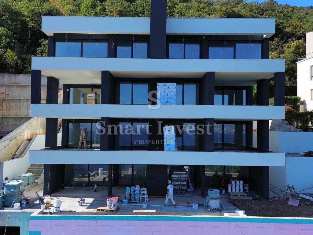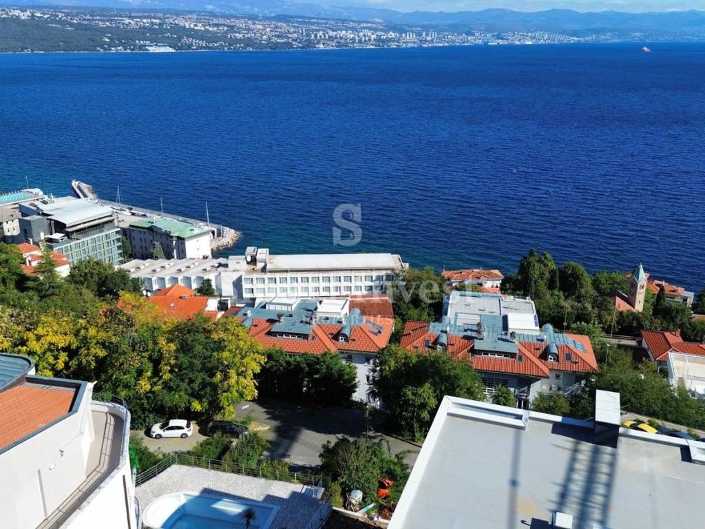 OPATIJA, Zum Verkauf steht eine exklusive Wohnung, 2 Schlafzimmer + Wohnzimmer, mit Terrasse, wunderschönem Meerblick und Garagenstellplatz, in einem luxuriösen Wohnhaus mit Garage und Aufzug in attraktiver Lage in Meeresnähe.