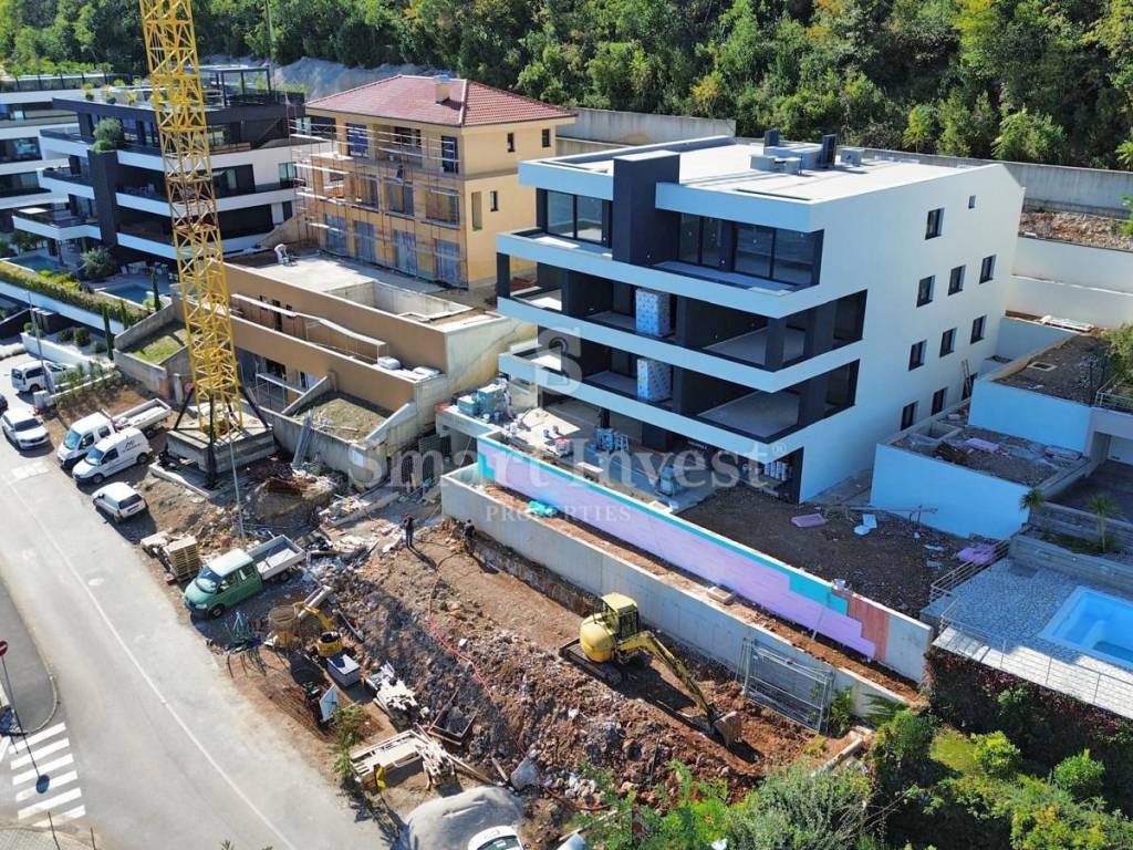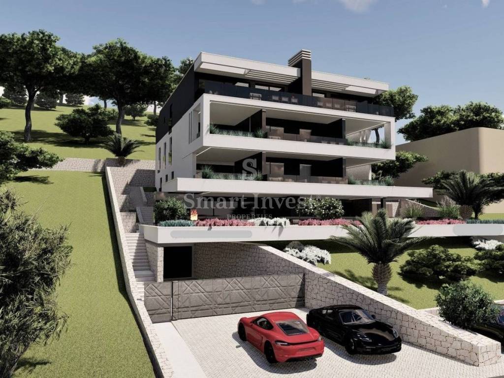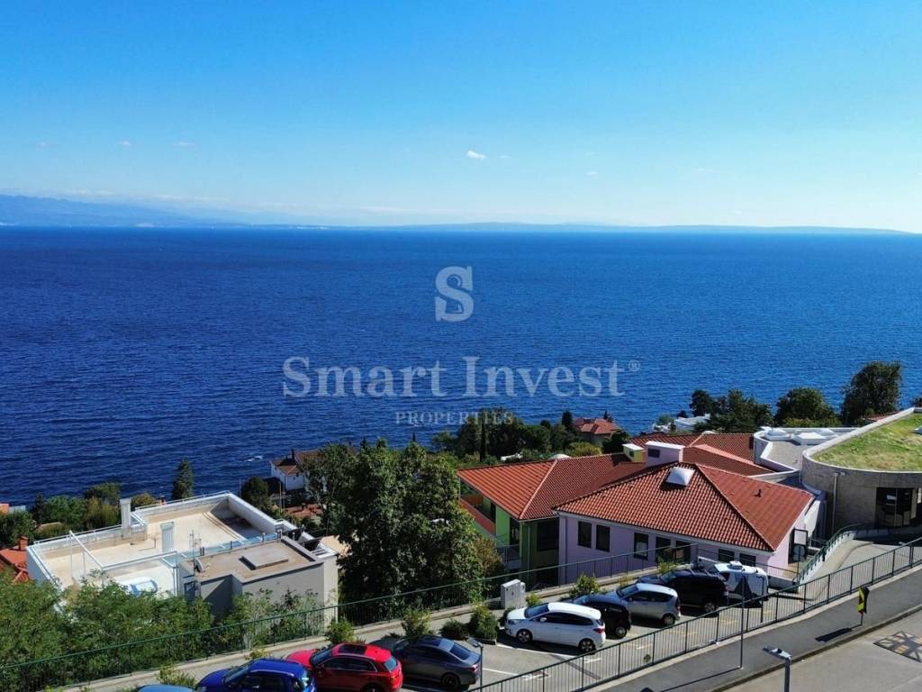 OPATIJA, Zum Verkauf steht eine exklusive Wohnung, 2 Schlafzimmer + Wohnzimmer, mit Terrasse, wunderschönem Meerblick und Garagenstellplatz, in einem luxuriösen Wohnhaus mit Garage und Aufzug in attraktiver Lage in Meeresnähe.